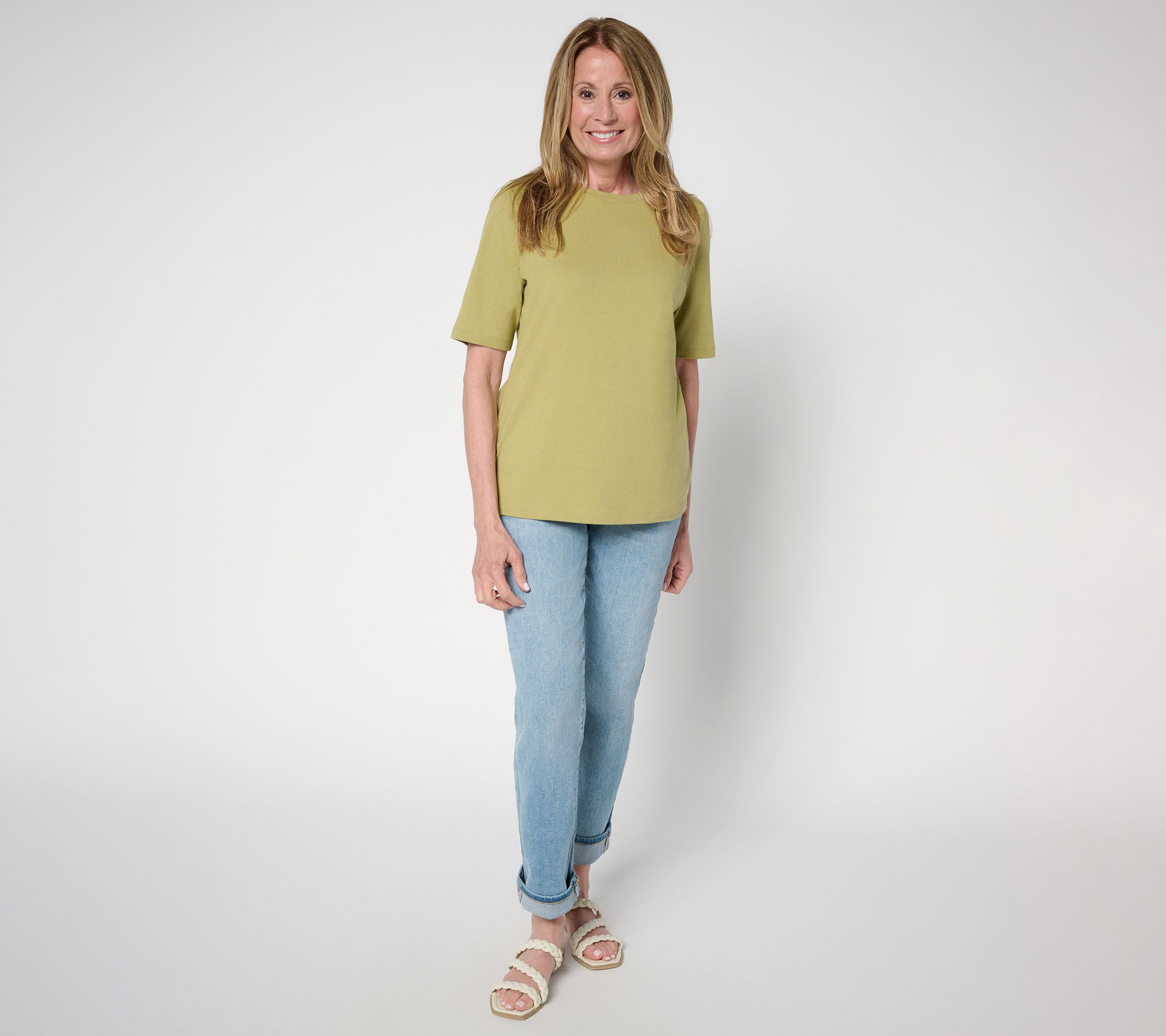 Denim & Co. Essentials True Cotton Elbow Sleeve Crew Neck Top