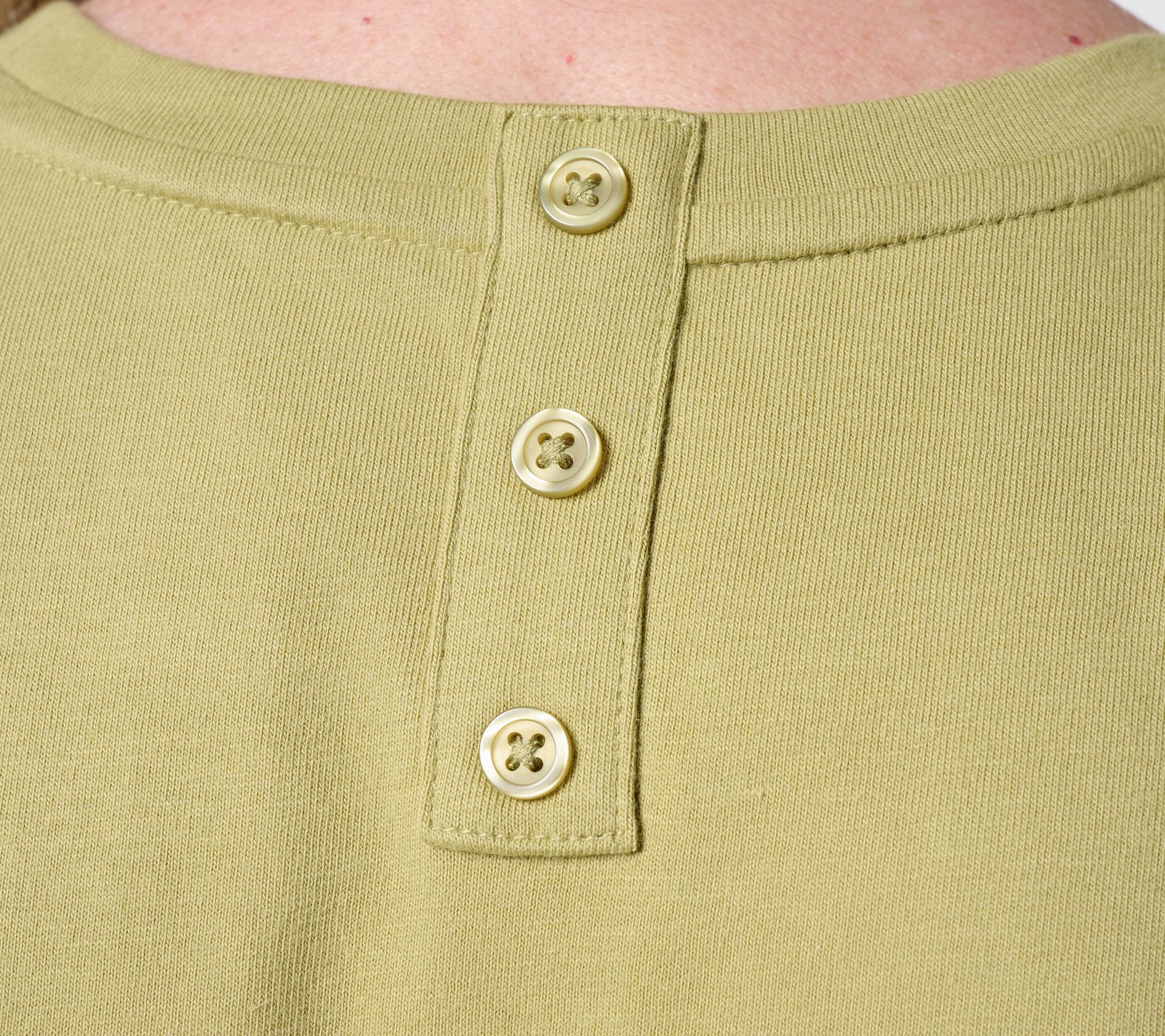 • Features: crew neckline, elbow-length sleeves, back non-functional button placket