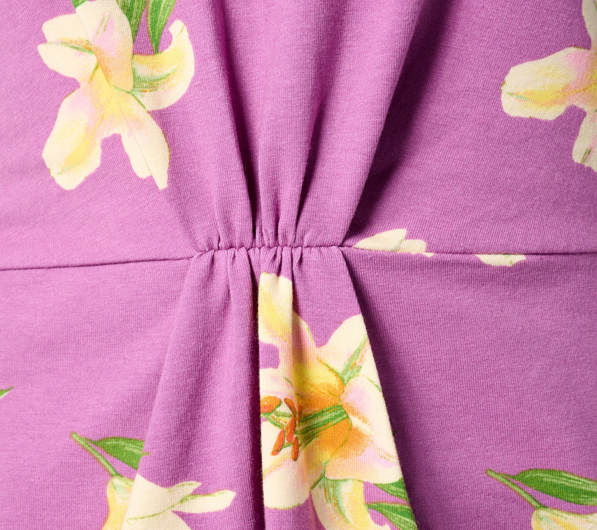 • Features: allover print, V-neckline, cap sleeves, pleating at waist seam