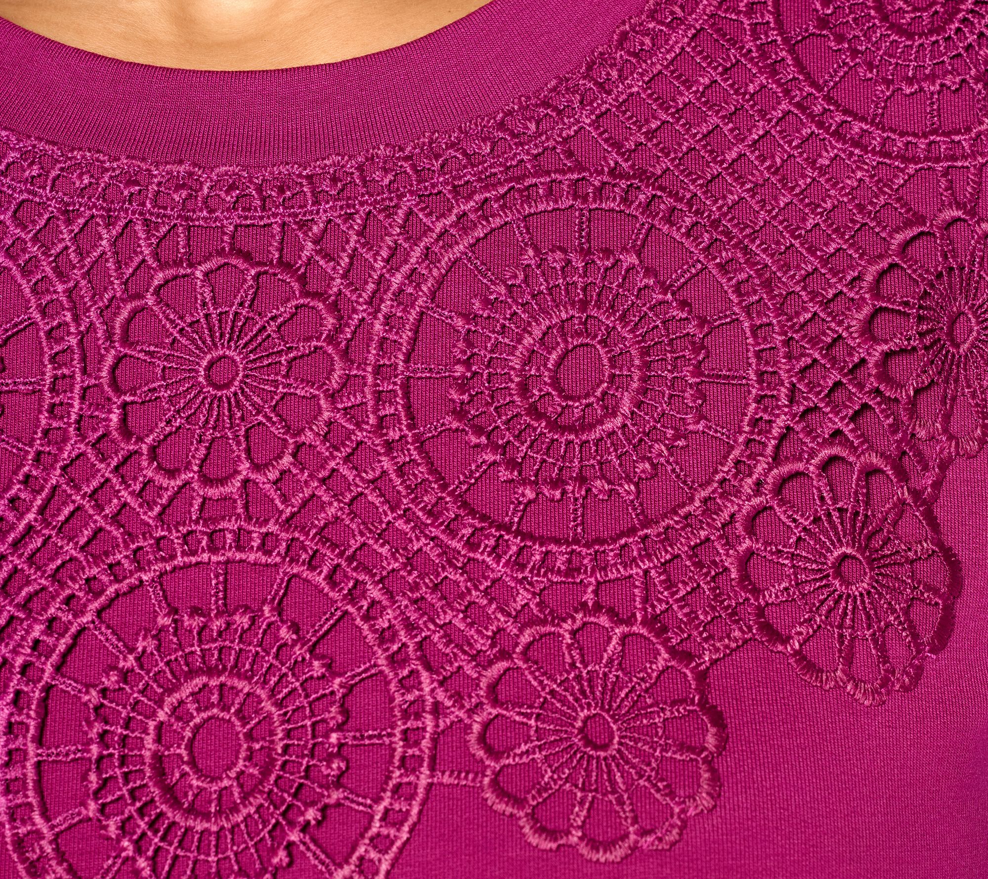 Denim & Co. French Terry Long Sleeve Pullover with Lace Detail