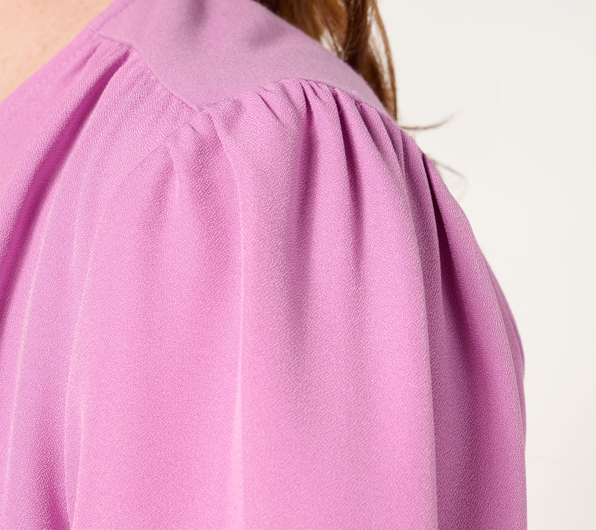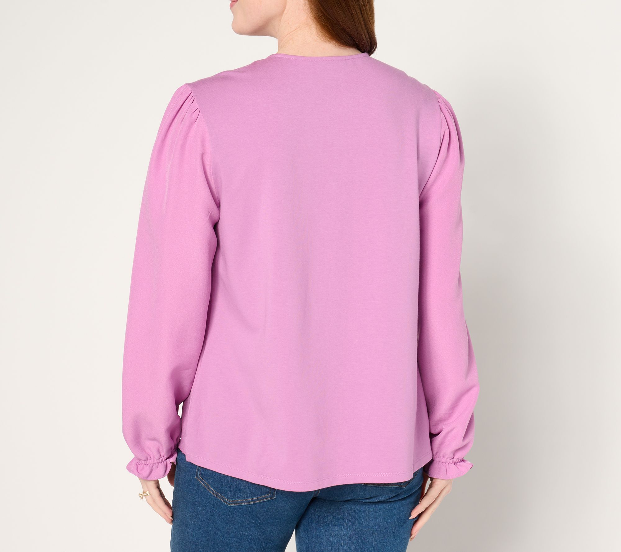 Update your everyday style with this lovely top. The blouson sleeves with shirring add an elegant touch, while the ruffled elastic cuffs and shirred shoulders elevate the look. From Denim & Co.® Fashions.
