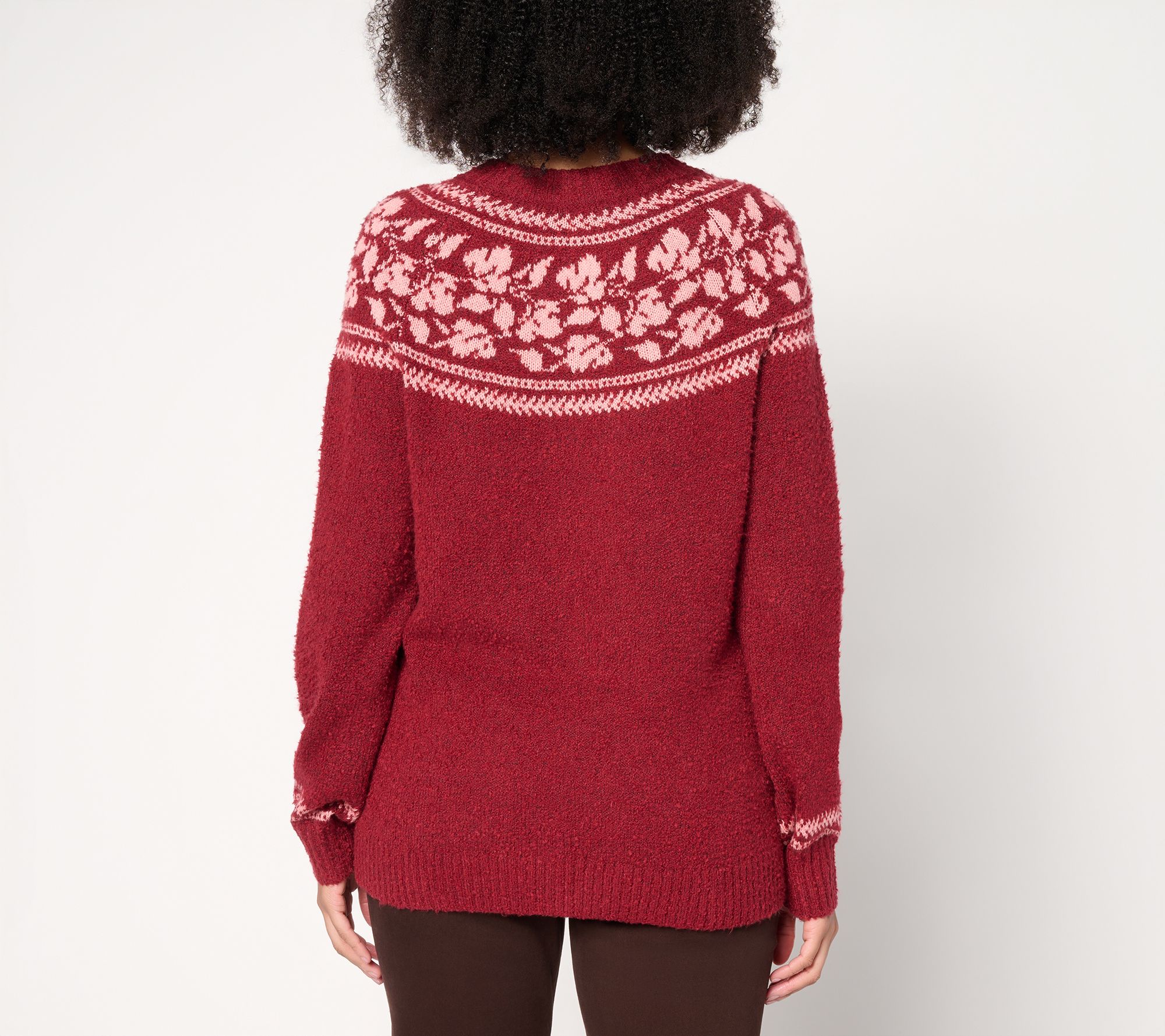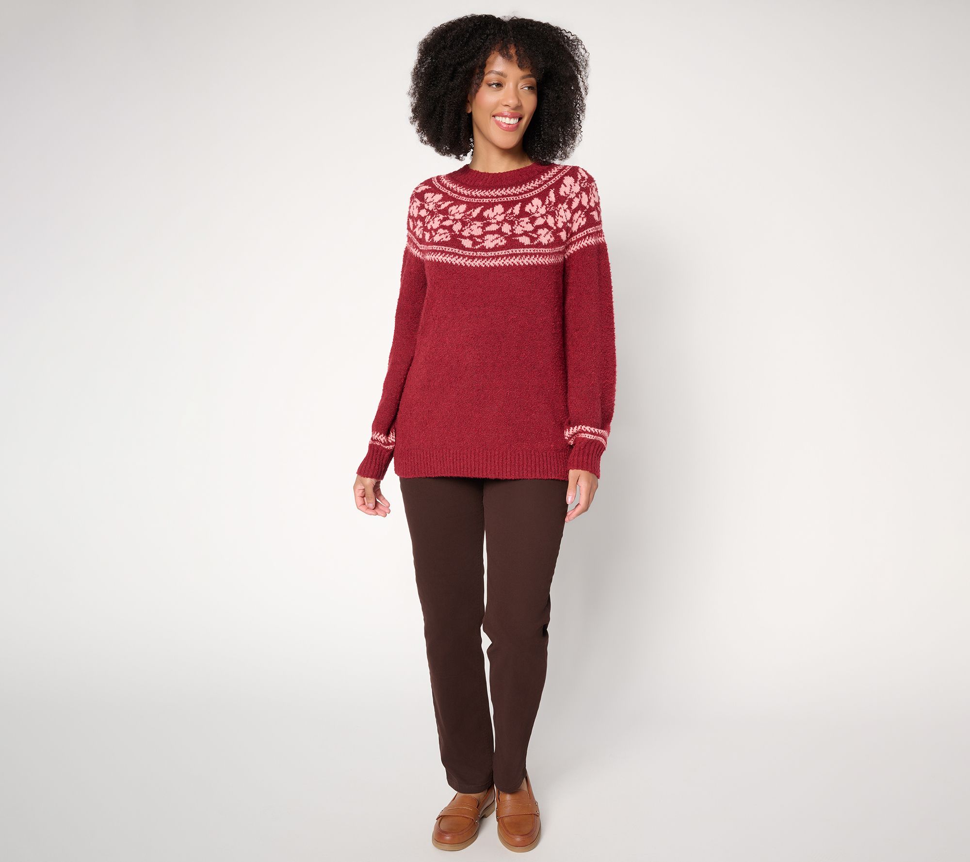 Bring a touch of seasonal charm to your day with this Fair Isle sweater -- its classic pullover style, mock-crew neckline, and detailed patterning around the neck and cuffs make it a cozy favorite for fireside evenings or crisp morning strolls. Rib-knit trim frames the look for a flattering, fuss-free finish every time you pair it with jeans or leggings. From Denim & Co.® Fashions.