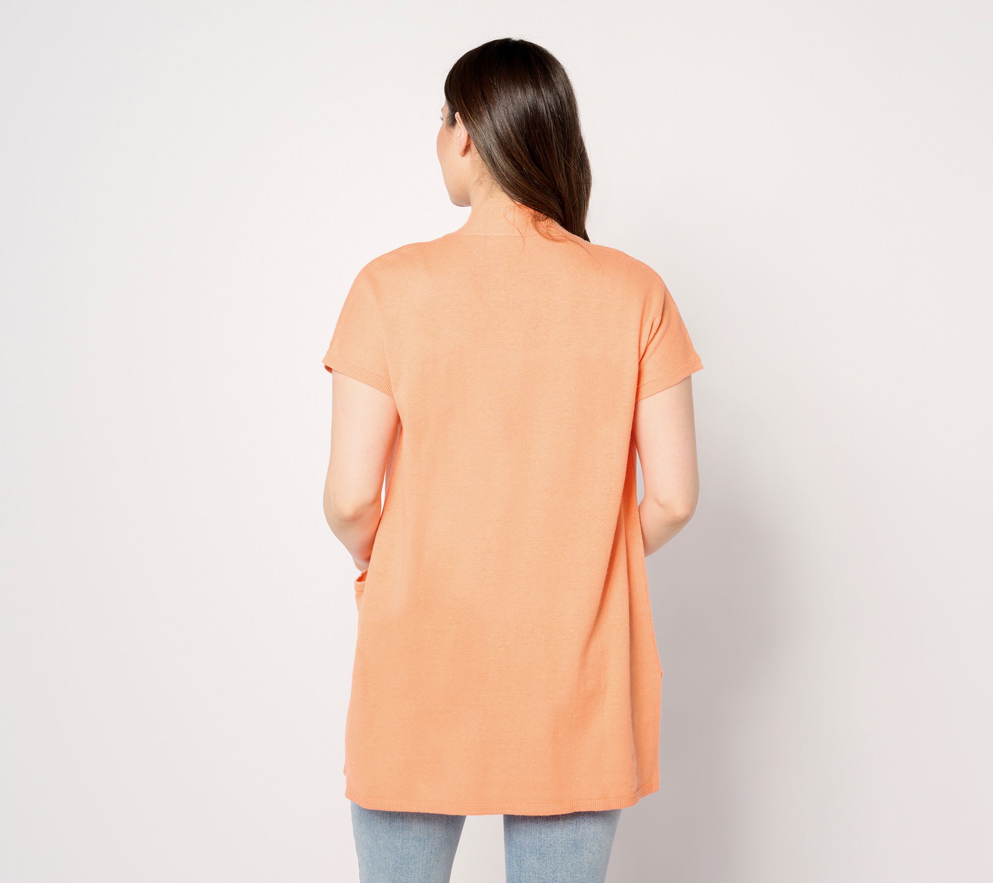 Denim & Co. Naturals Petite Short Sleeve Tunic Cardigan