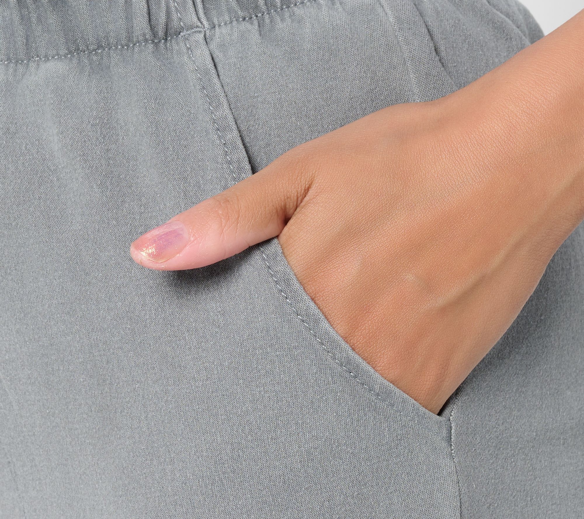 • Features: pull-on style, self-folded elastic waistband, side pockets, full length