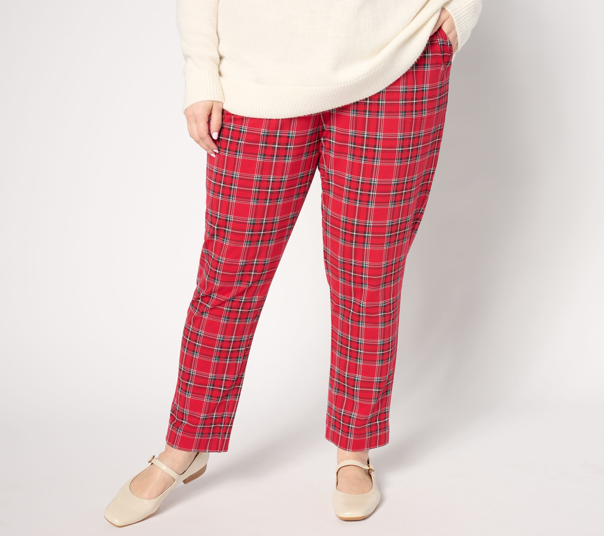 Your most active days demand the no-fuss comfort of these printed Duo Stretch knit ankle pants -- as does cozying up on the couch afterwards! Redefine your downtime and run-around time with a crisp, polished pull-on look that offers both comfort and utility. From Denim & Co.® Fashions.