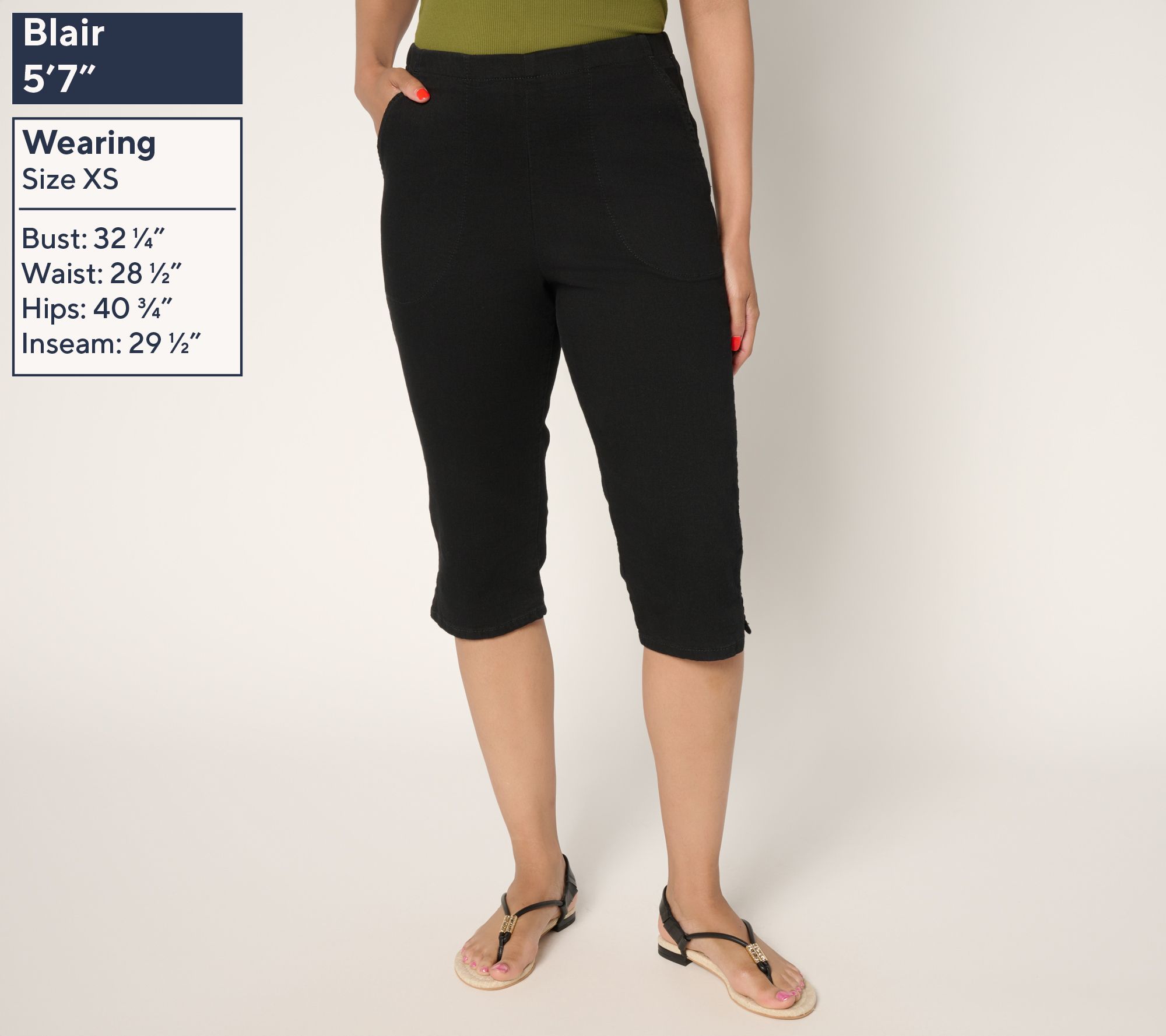 Ready for sunny-day plans? These denim skimmers offer pull-on ease and a smooth silhouette, thanks to a flat front waistband and stretchy elastic at the back. Spacious side pockets and breezy side slits keep you comfortable and practical -- just add your favorite sandals and you're set for weekday errands, lunch al fresco, or vacay adventures. From Denim & Co.® Fashions.