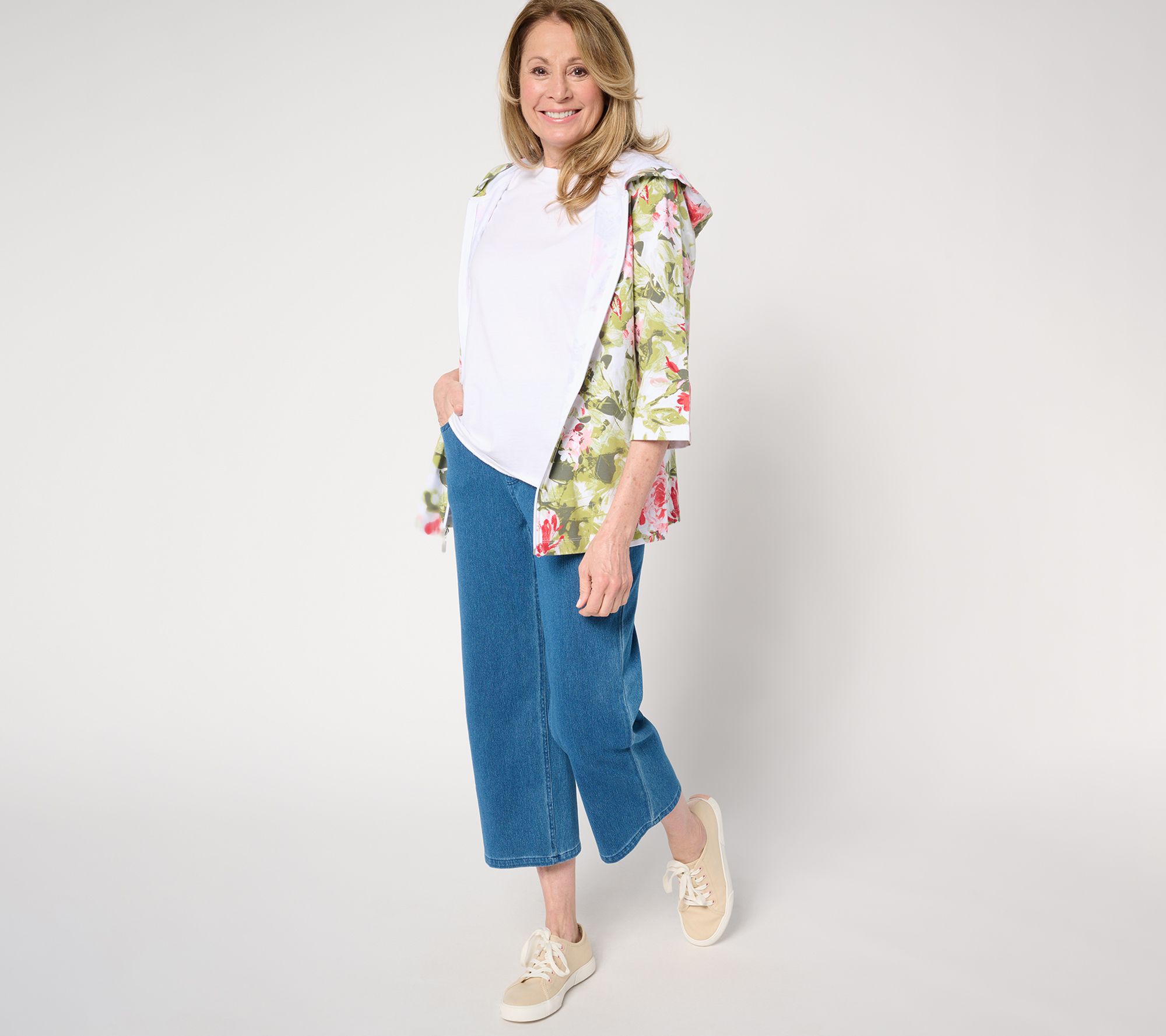You and your active days deserve the chic comfort of these Denim & Co.® crop jeans. Perfect for running errands or running to the office (or both!), Comfy Knit Air construction covers you in comfort while the trouser-like tailoring is always poised and polished (and the crop length frames your shoe game perfectly). From Denim & Co.® Fashions.