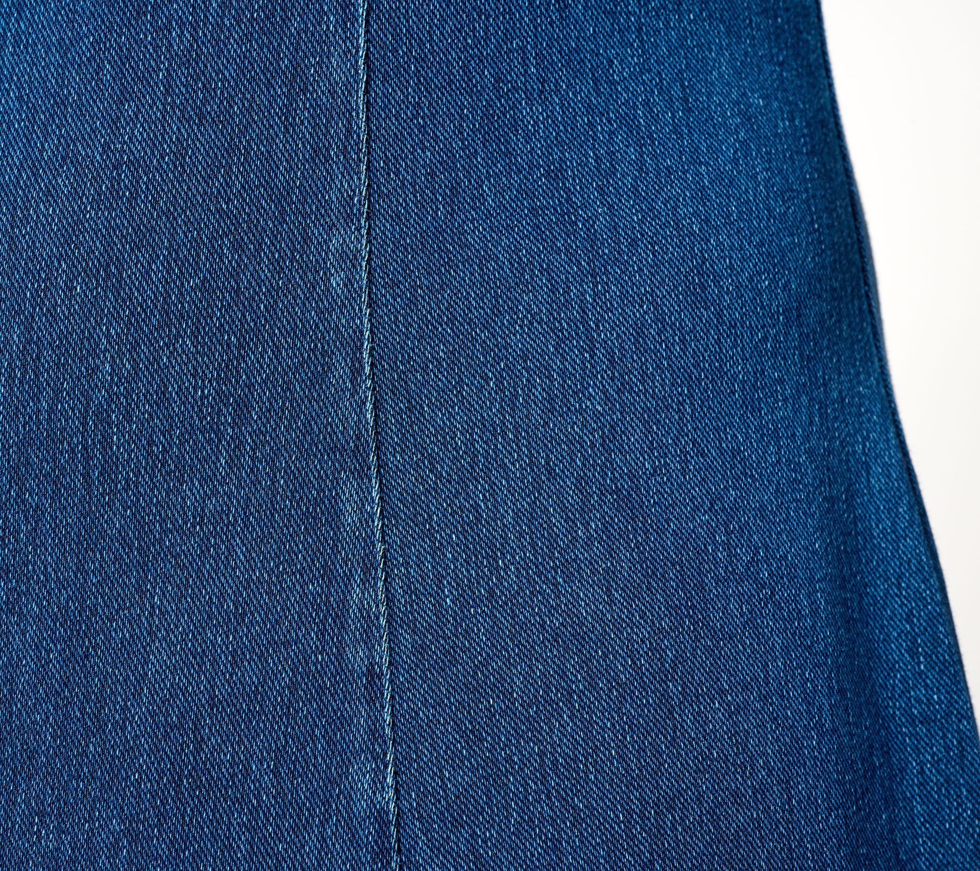 • Features: scoop neckline, princess seams, A-line fit, center-back seam, double turnback hem