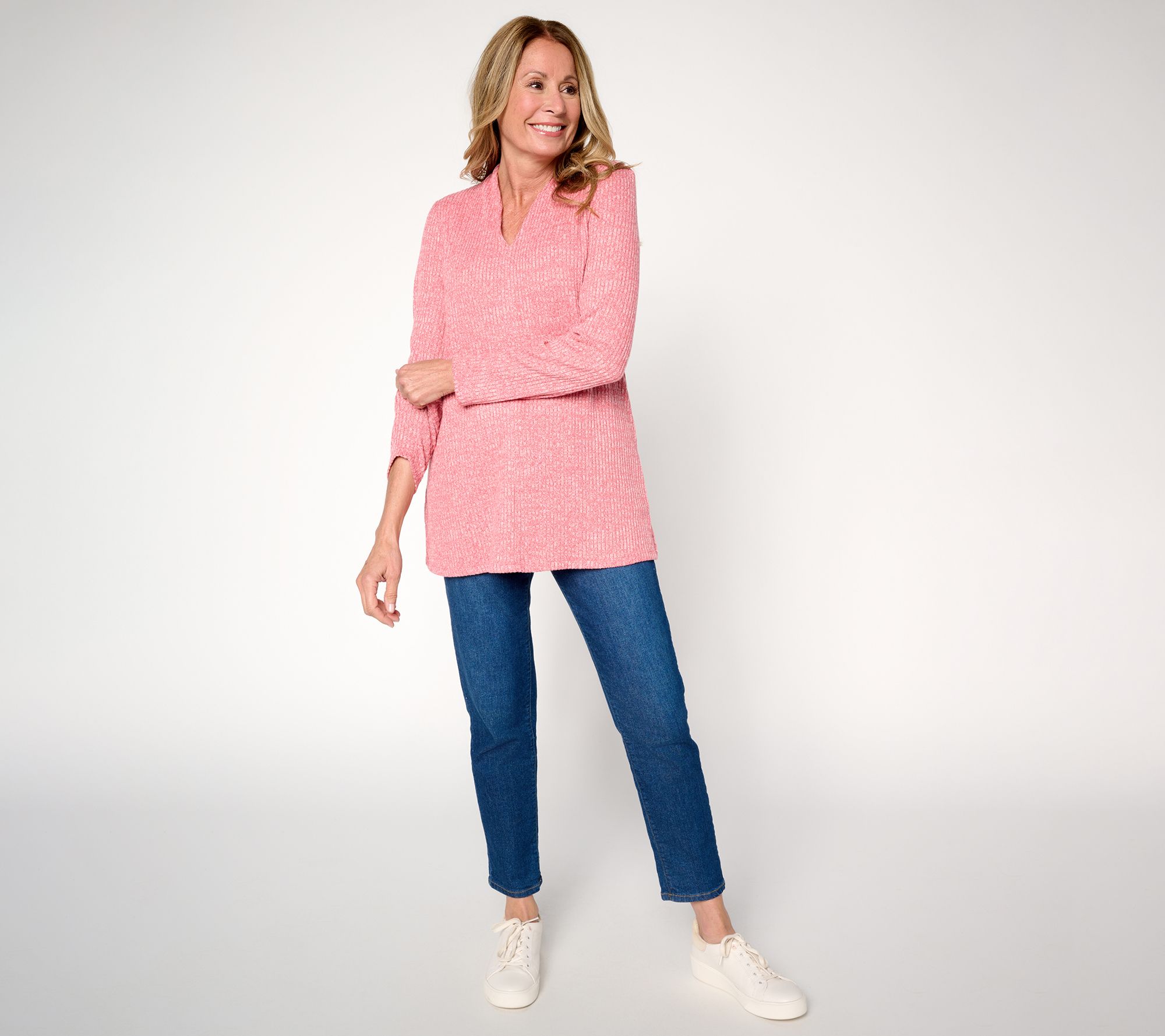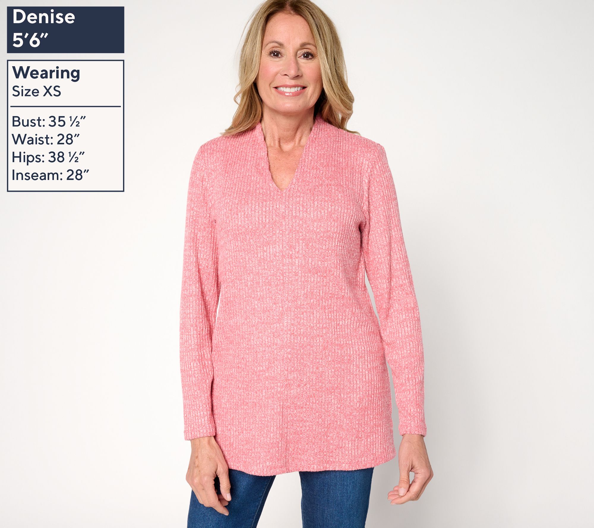 Casual outings and daily routines get a boost of comfort and style with this knit tunic. Designed in a drop-needle knit with a heathered look, the pretty pick pairs easily with leggings or jeans while keeping you cozy. From Denim & Co.® Fashions.