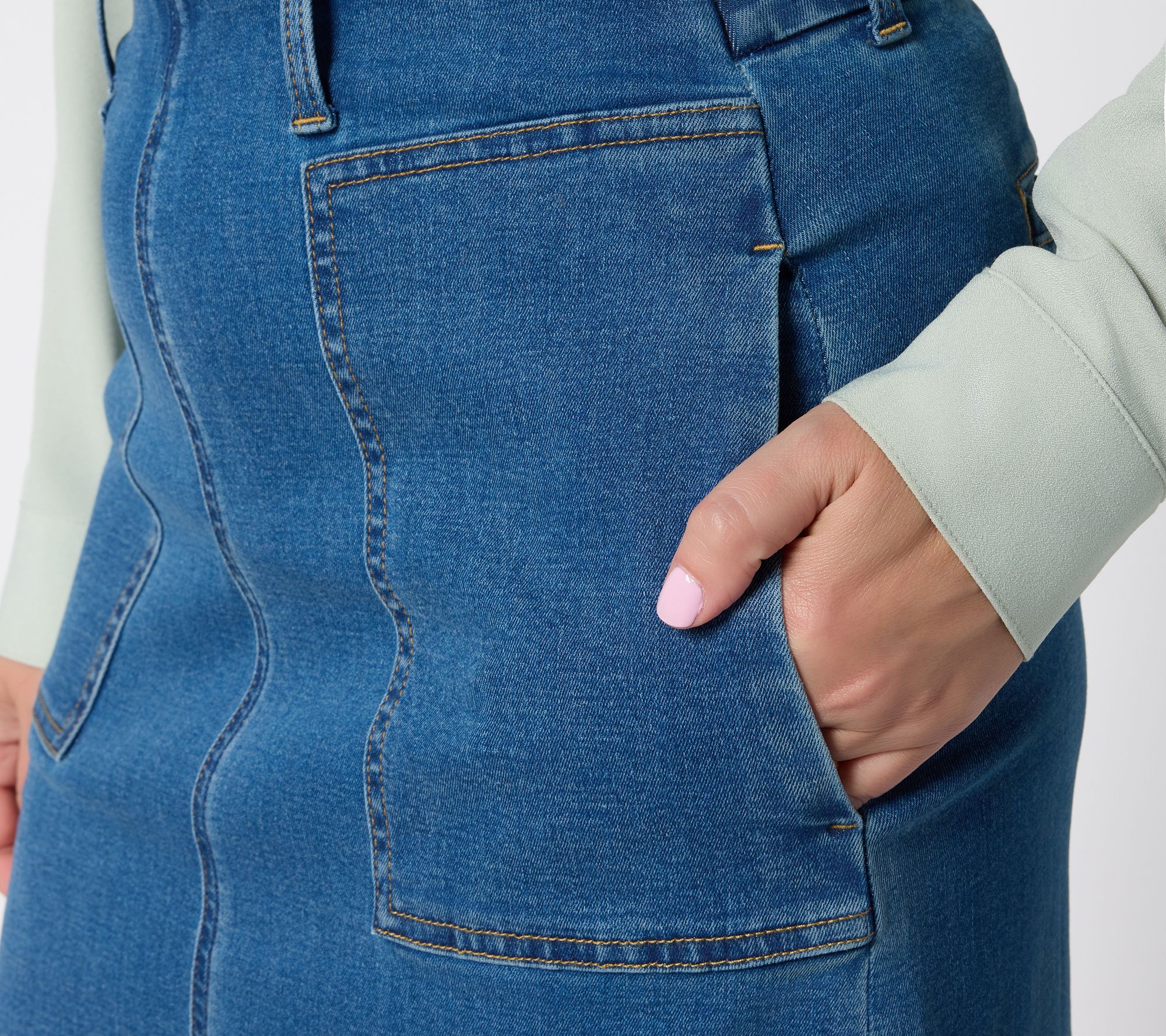 Denim & Co. Petite Easy Stretch Denim Midi Skirt