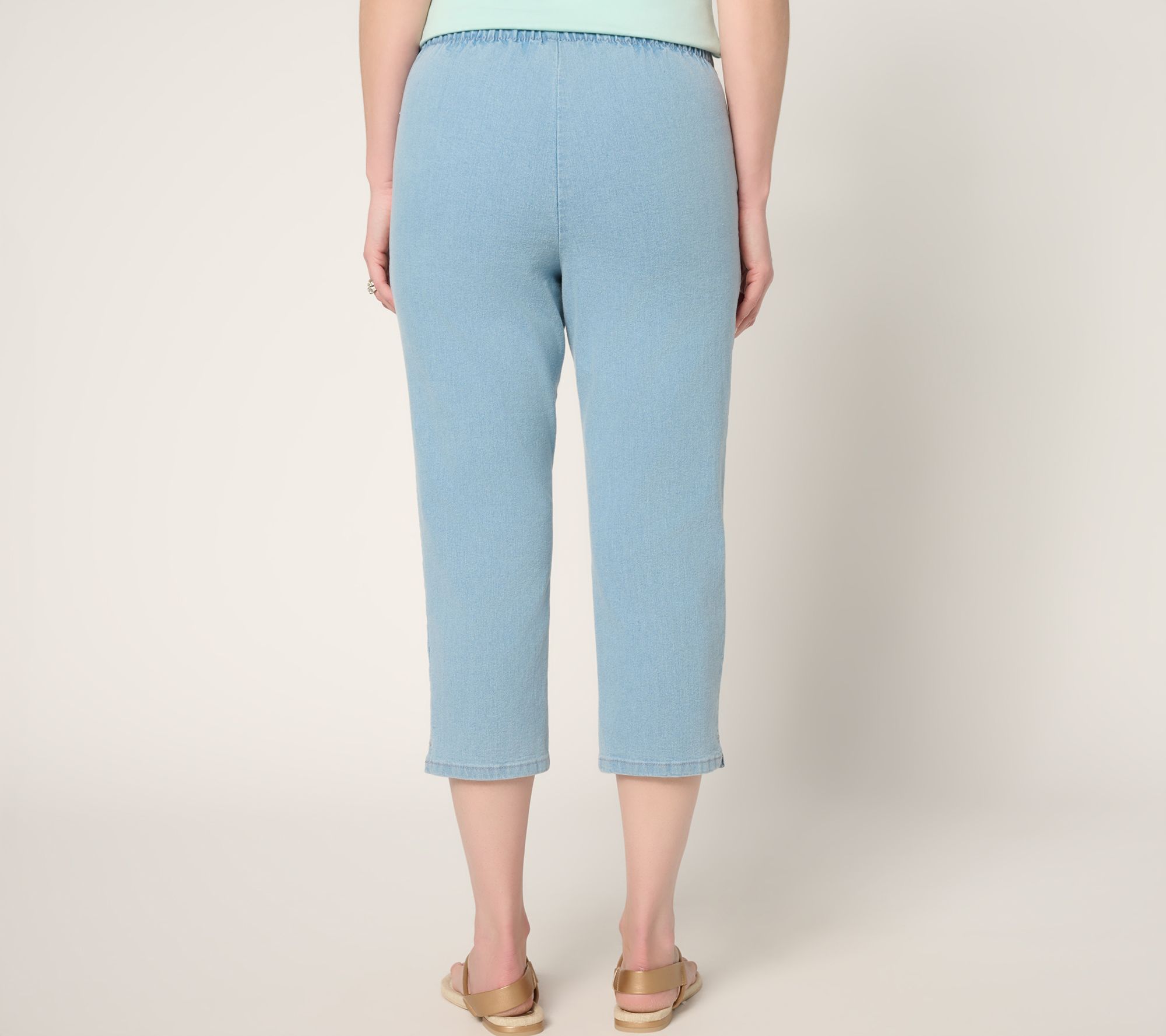 Transition from sunny strolls to casual outings with these petite capri pants -- your answer to effortless warm-weather style. With a comfy pull-on waistband, handy pockets, and a touch of stretch for easy movement, these capris let you go from brunch to afternoon errands in carefree comfort. The side slits at the hem offer a breezy finish you'll love pairing with your favorite sandals or slip-ons. From Denim & Co.® Fashions.