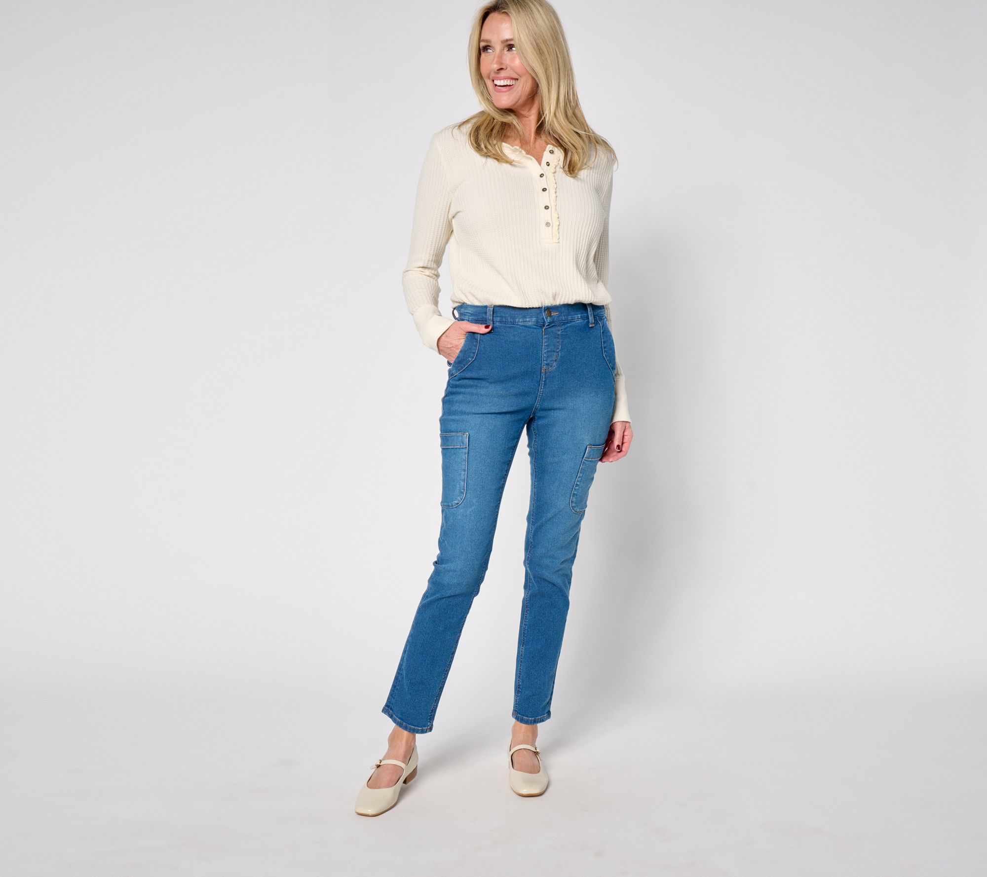 Comfortable daily denim is in demand. Give your downtime, on-the-go adventures, and quick getaways a serious style upgrade with these classic denim ankle jeans from Denim & Co.®. They're cotton-rich with a sprinkle of spandex to flex throughout your day. Plus, pull-on ease makes it effortless to pop them on and the slimmer straight leg offers the ideal silhouette for pairing with a full four seasons of footwear. From Denim & Co.® Fashions.