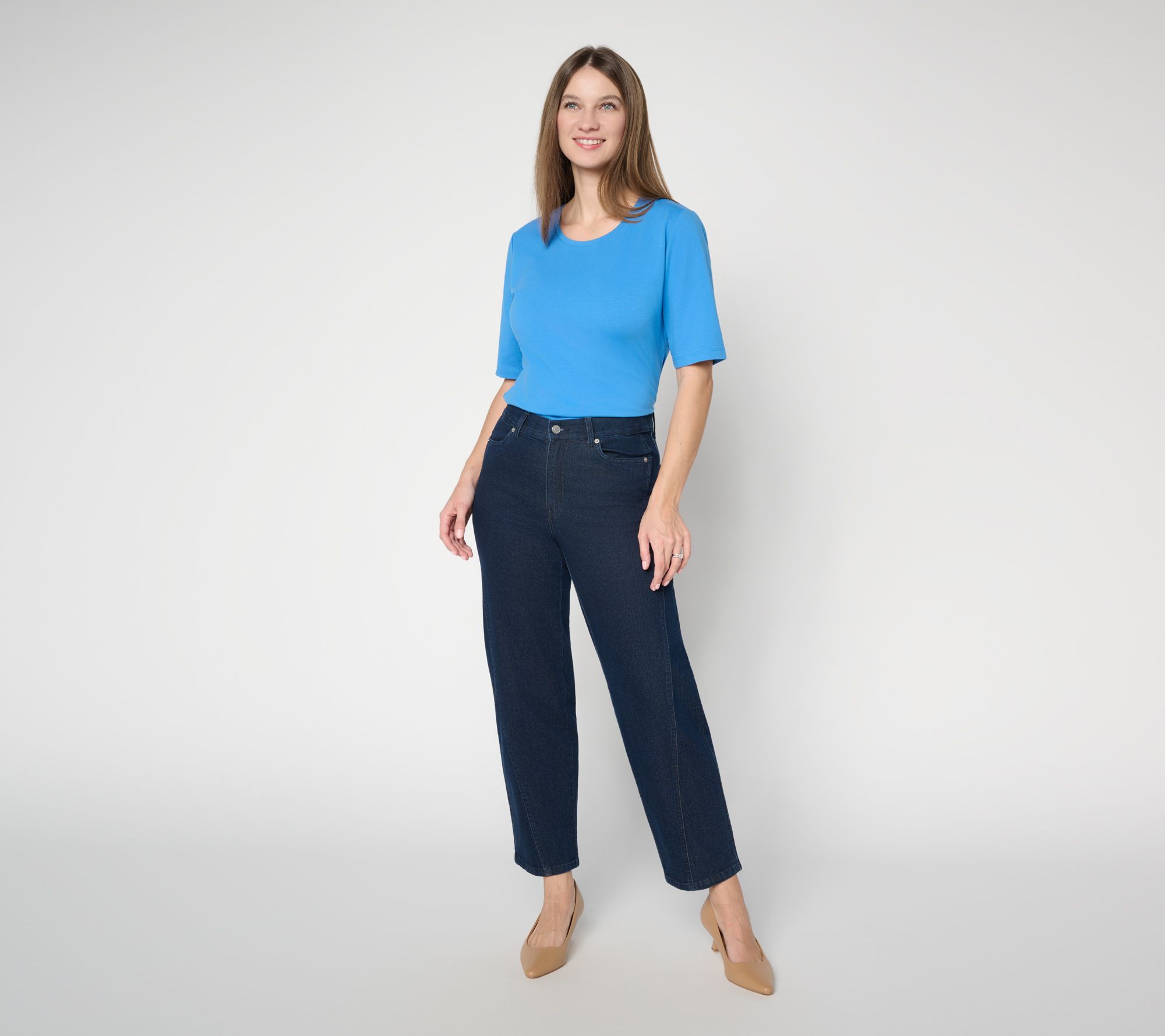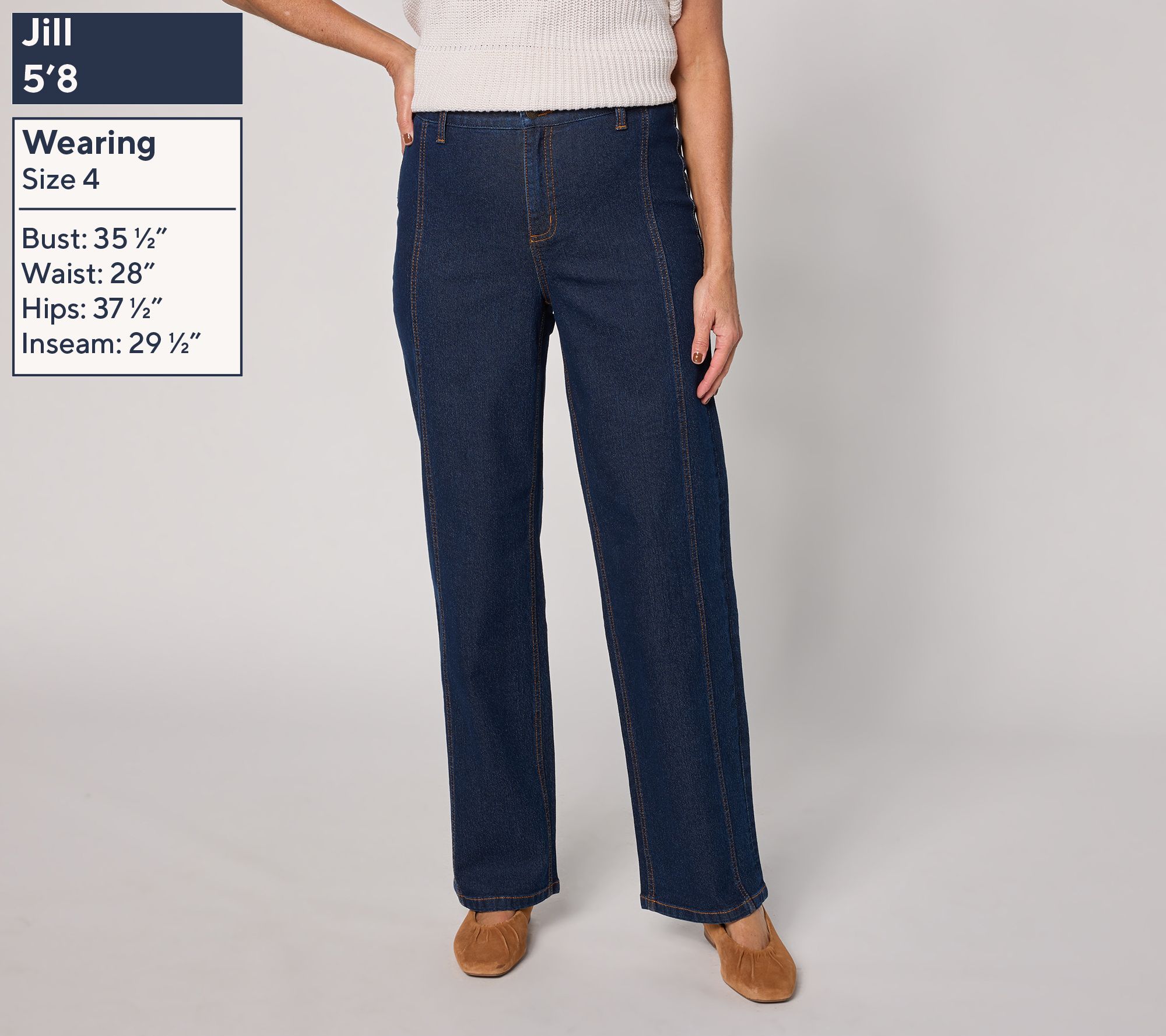 Denim & Co. Petite Indigo Classic Stretch Wide Leg Seamed Jeans