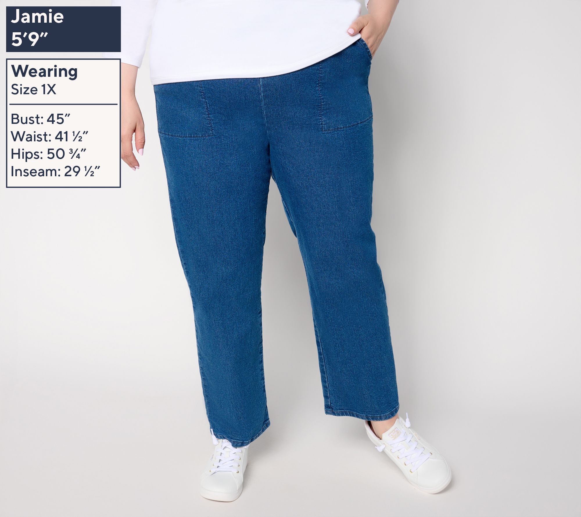 Every closet can use this pair. Clean lines, easy entry, and a perfect ankle length make this flat-front foundation a daily front-runner for MVP (most versatile pants). Practical slash pockets seal the deal. From Denim & Co.® Fashions.