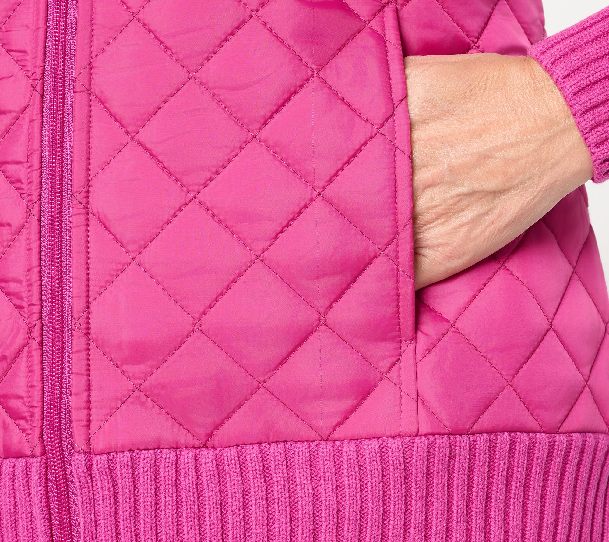 If your coat closet's filled with outerwear but you're still craving a daily grab-and-go, Denim & Co.'s here for it. Reach for this multipurpose sweater jacket for daytime strolling, errand-running, or dog-walking routines (and don't forget to fit in a stop at the coffee shop). The quilted knit design, zip-front closure, and ribbed stand collar bring together comfort and style, while long shaker sleeves and on-seam pockets work together to keep you warm. From Denim & Co.® Fashions.