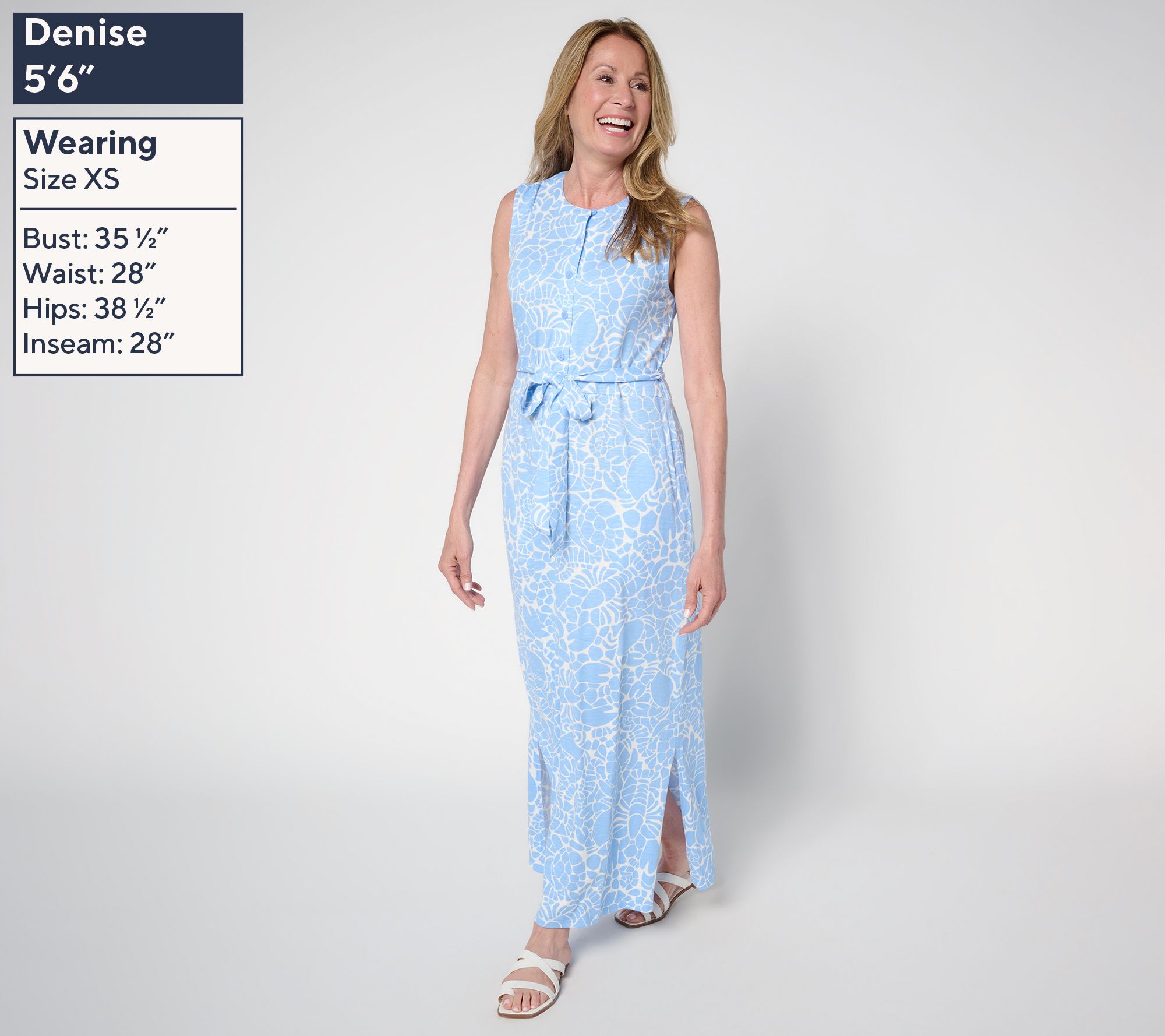 Sunny days are here again and this easy-going maxi dress greets them with style. A subtle turtle print and tie belt add charm, while the flowy silhouette keeps you comfortable for brunches or evenings out. From Denim & Co.® Fashions.
