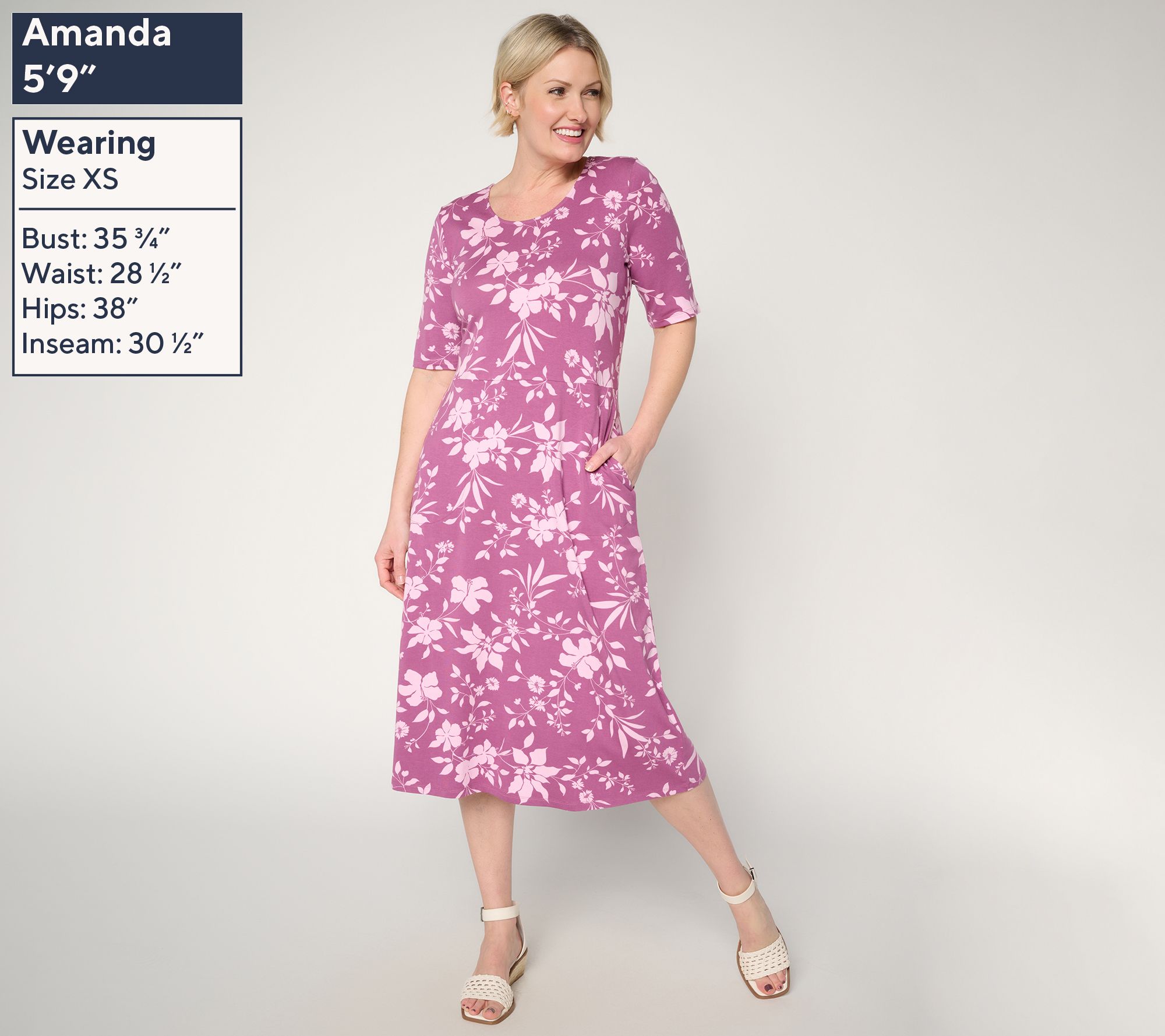 Planning a lunch out with friends or catching up on errands feels easy in this midi dress crafted from a soft knit fabric. Elbow-length sleeves and a round neckline keep the look classic yet polished for work or the weekend. Pair it with anything from flats to sandals to wedges to dress it up or down. From Denim & Co.® Fashions.
