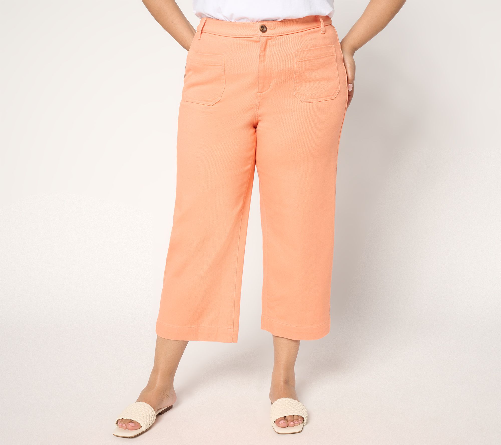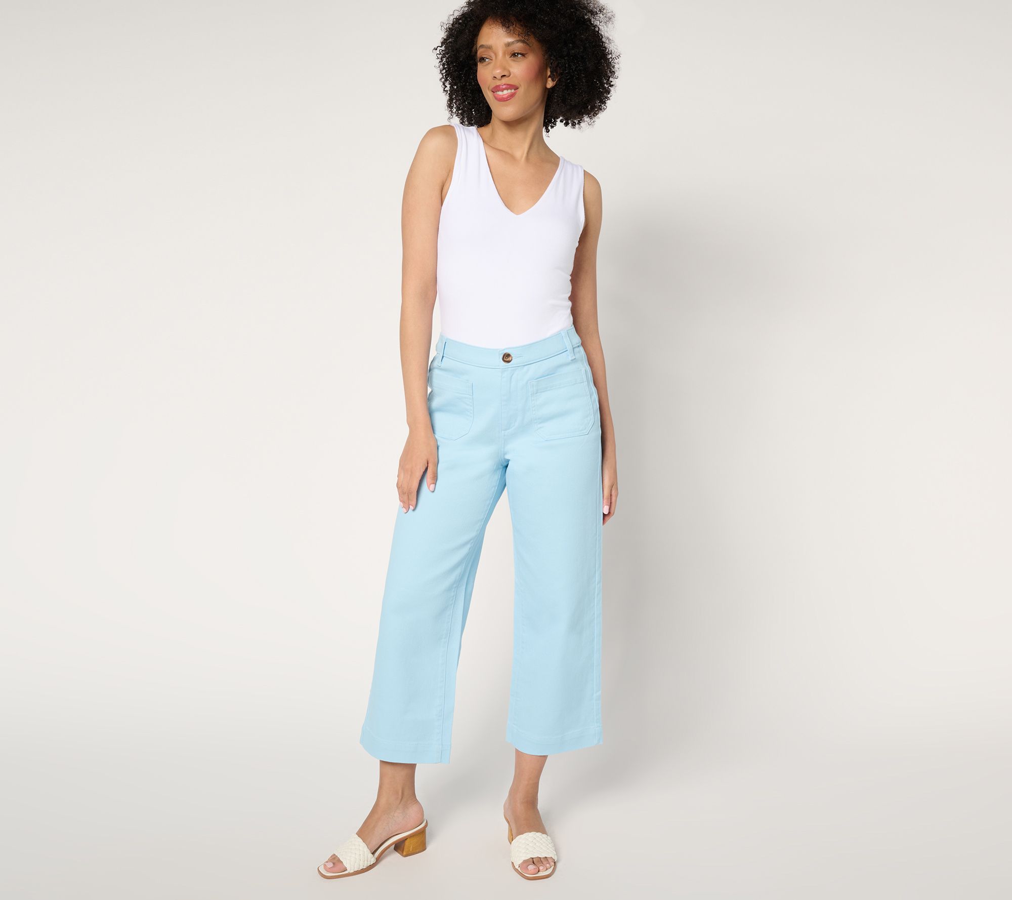 Denim & Co. Petite Twill Wide Leg Crop Pant w/ Patch Pockets