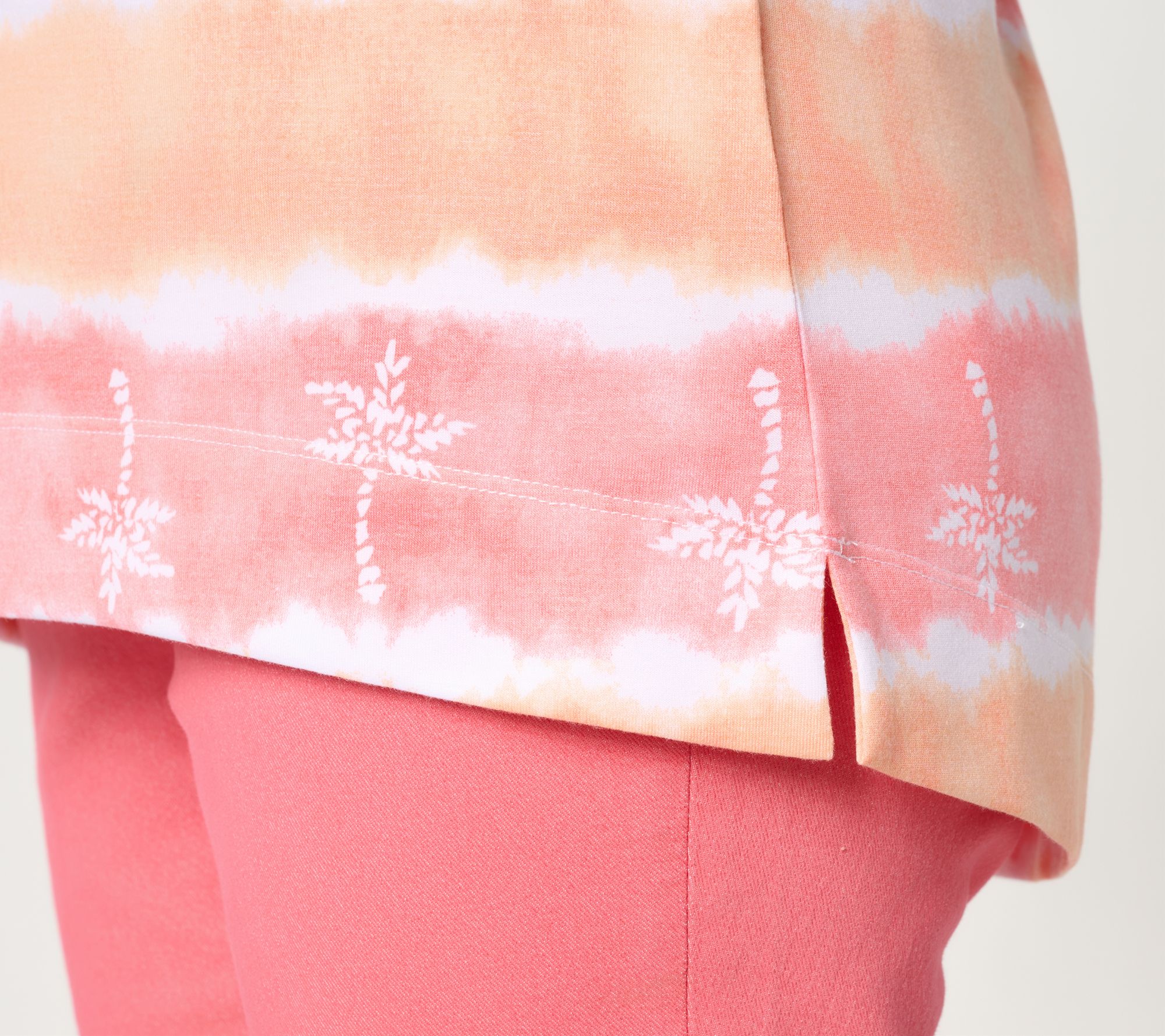 Denim & Co. Petite Watercolor Striped Tunic w/ Beach Motif