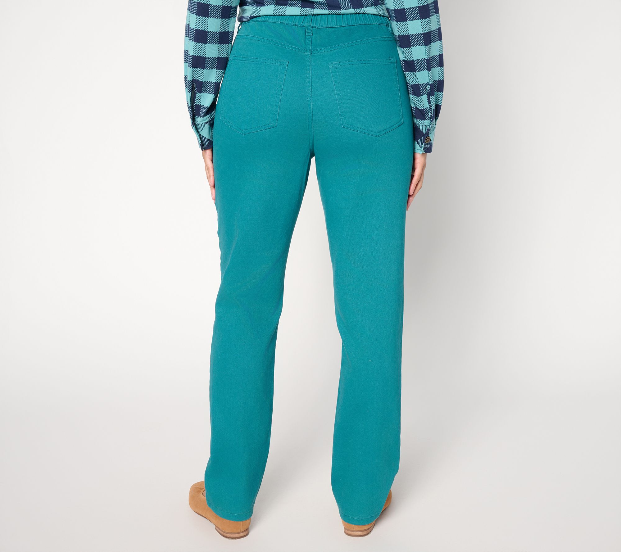 Denim & Co Petite Woven Twill Slim Straight Pants