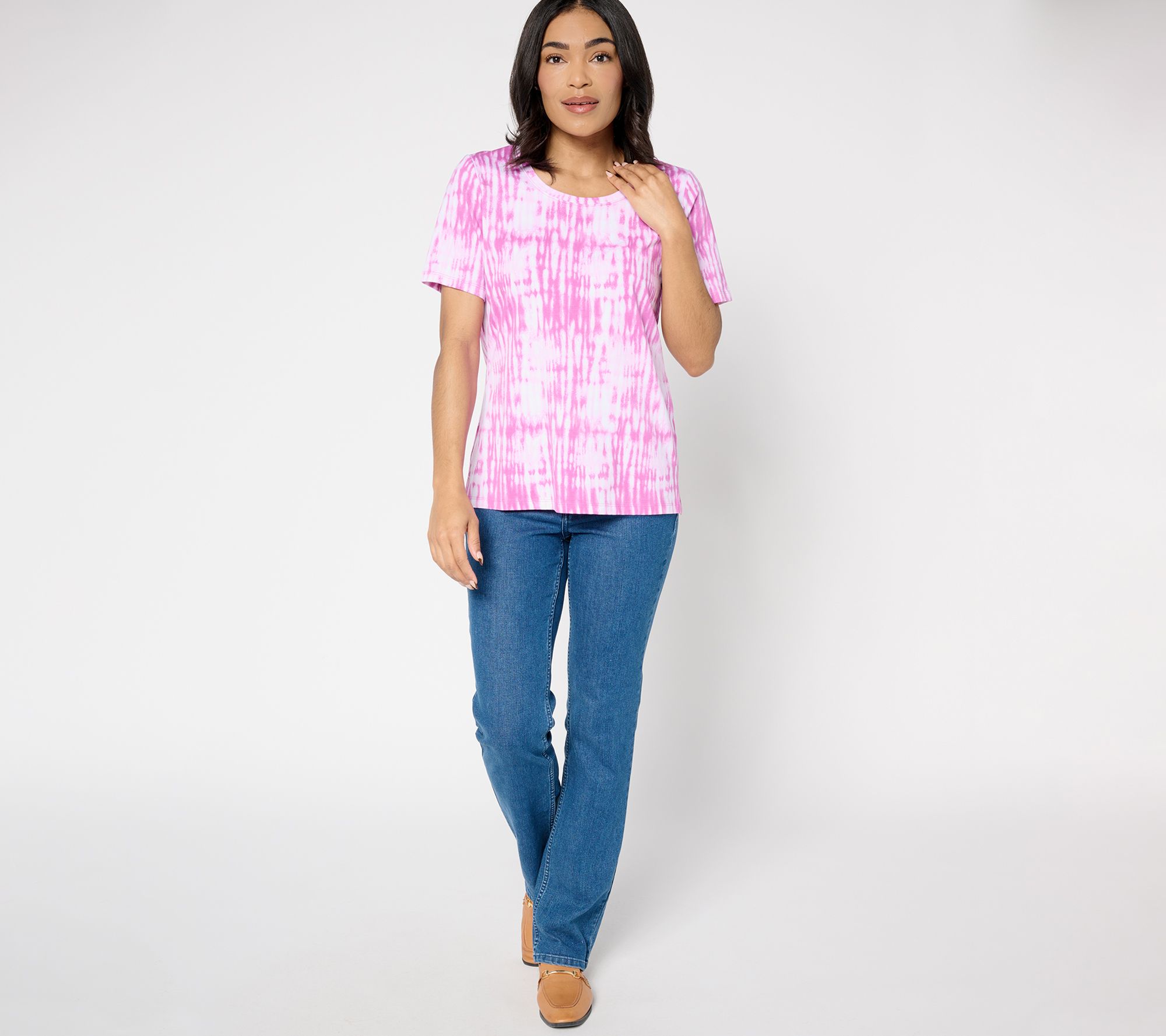 In your vibrancy era? Embrace it in this short-sleeve top with a lively ikat-inspired print. Soft Favorite Jersey fabric in a graceful shape makes it a comfortable pick for daily wear. From Denim & Co.® Fashions.