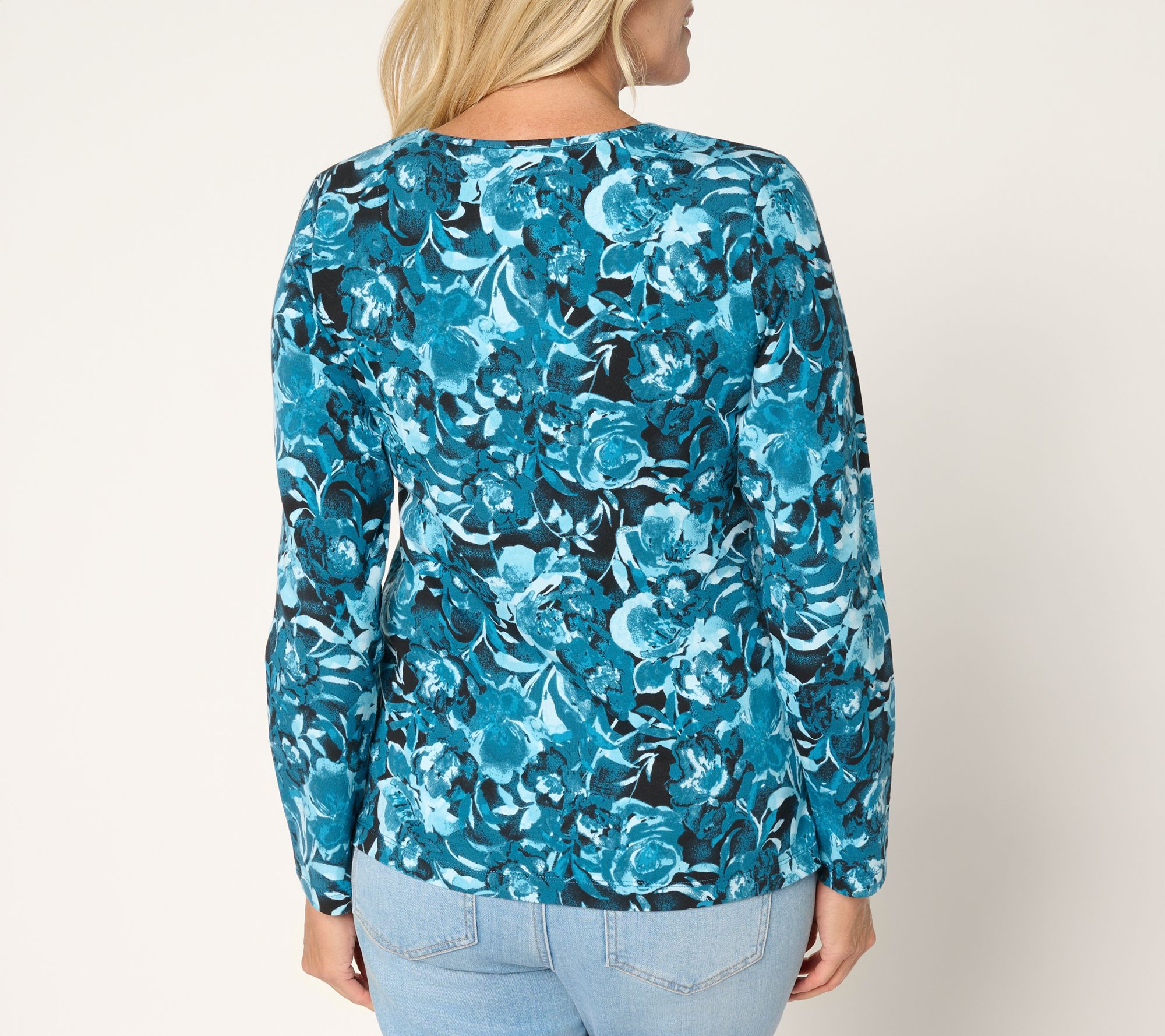 Denim & Co. Printed Floral Perfect Jersey Long Sleeve Top
