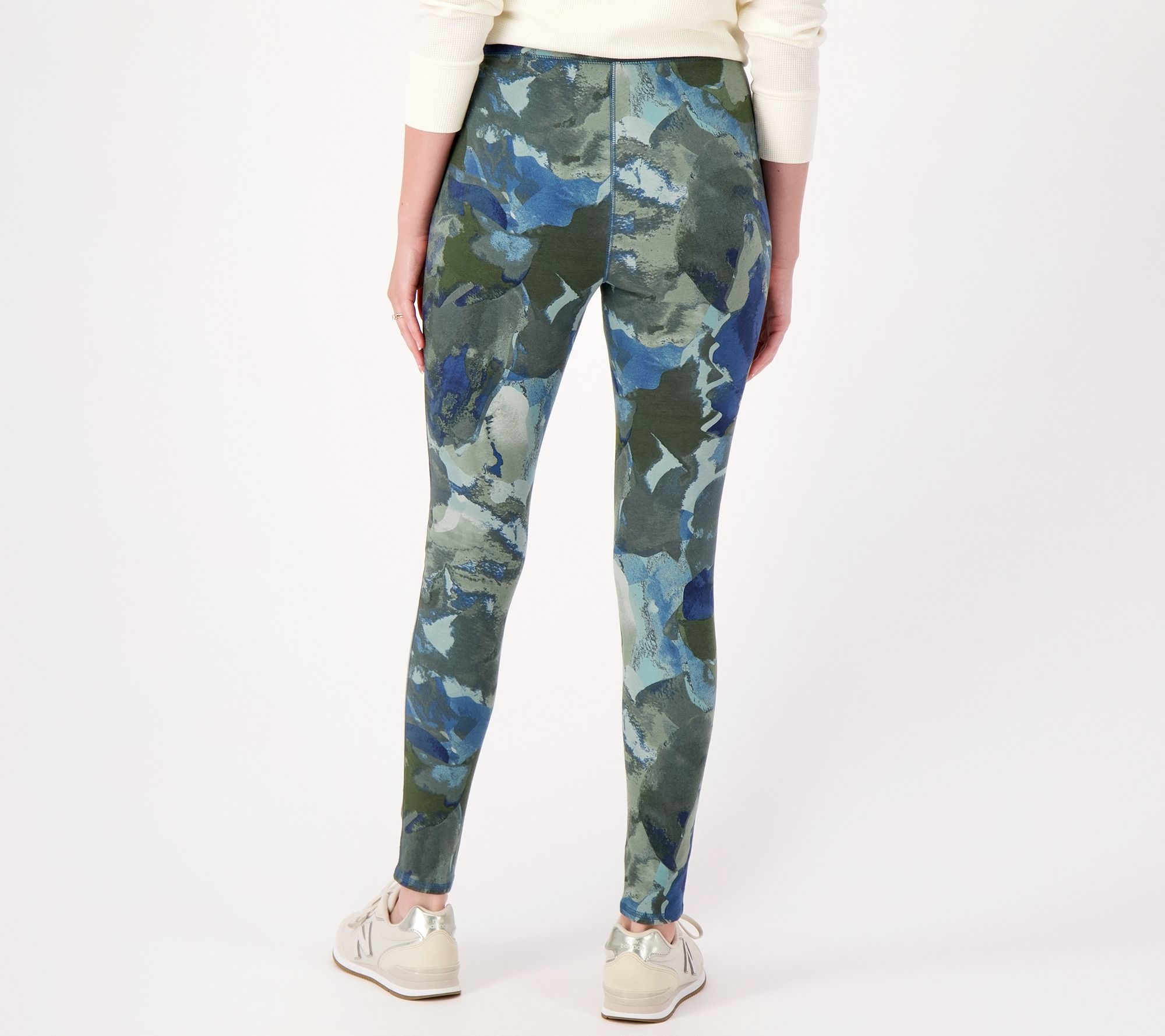 Denim & Co. Printed Petite Duo Stretch Full-Length Leggings