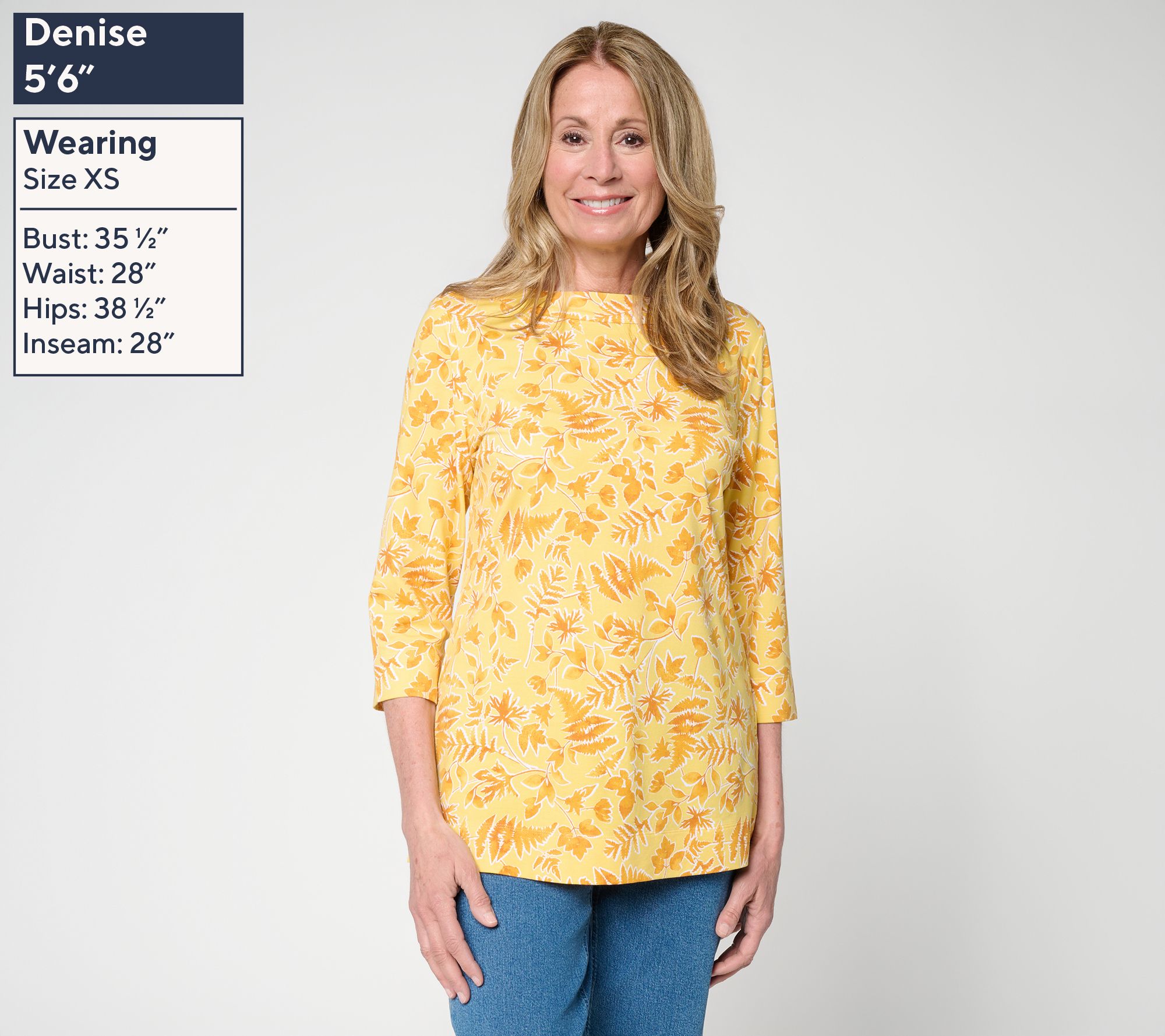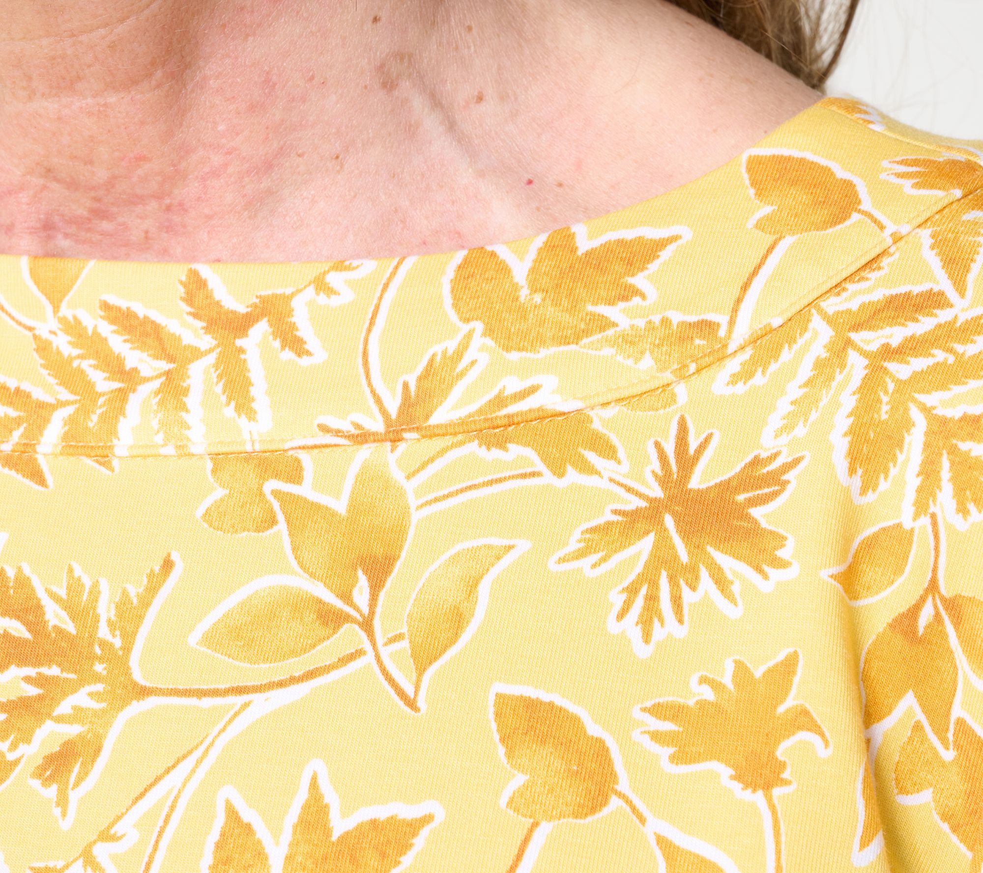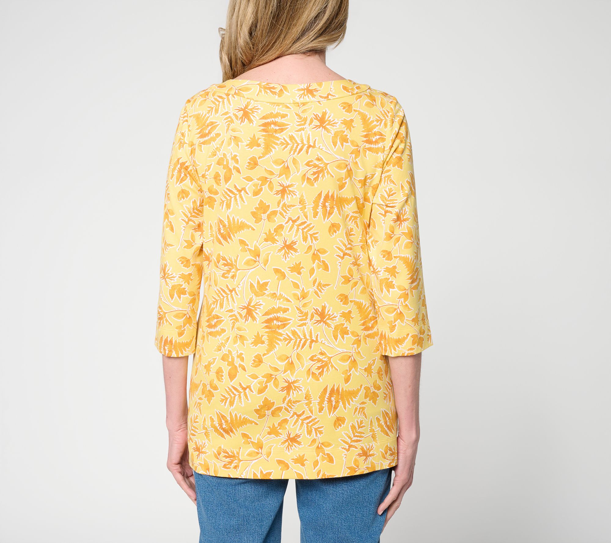 If a joyful botanical print is your jam, this is your top! From the boatneck (that provides extra-comfy coverage) to the So Soft Jersey fabrication, it's a cheery go-to for everything from baking with the littles to weekends in the country. From Denim & Co.® Fashions.