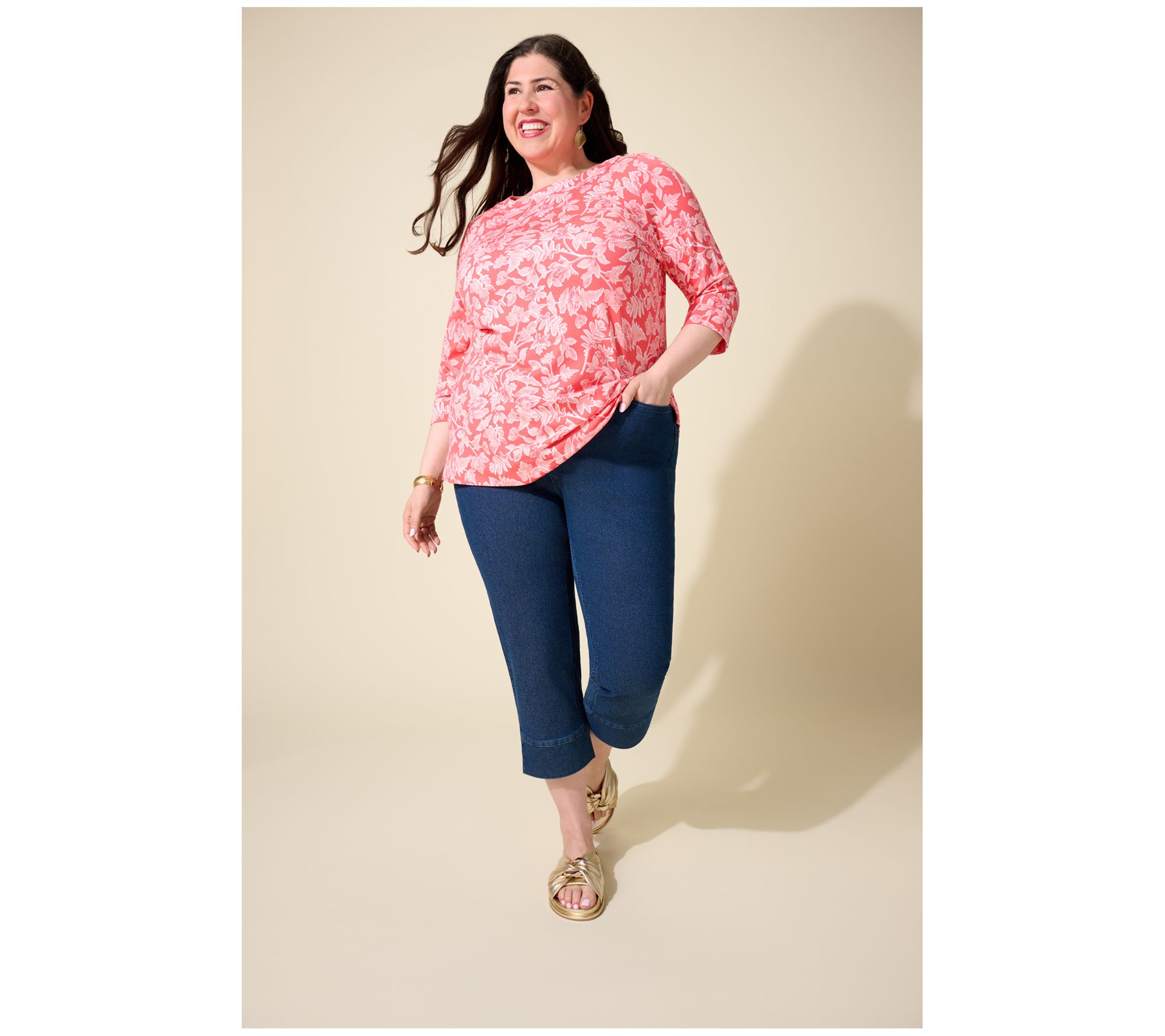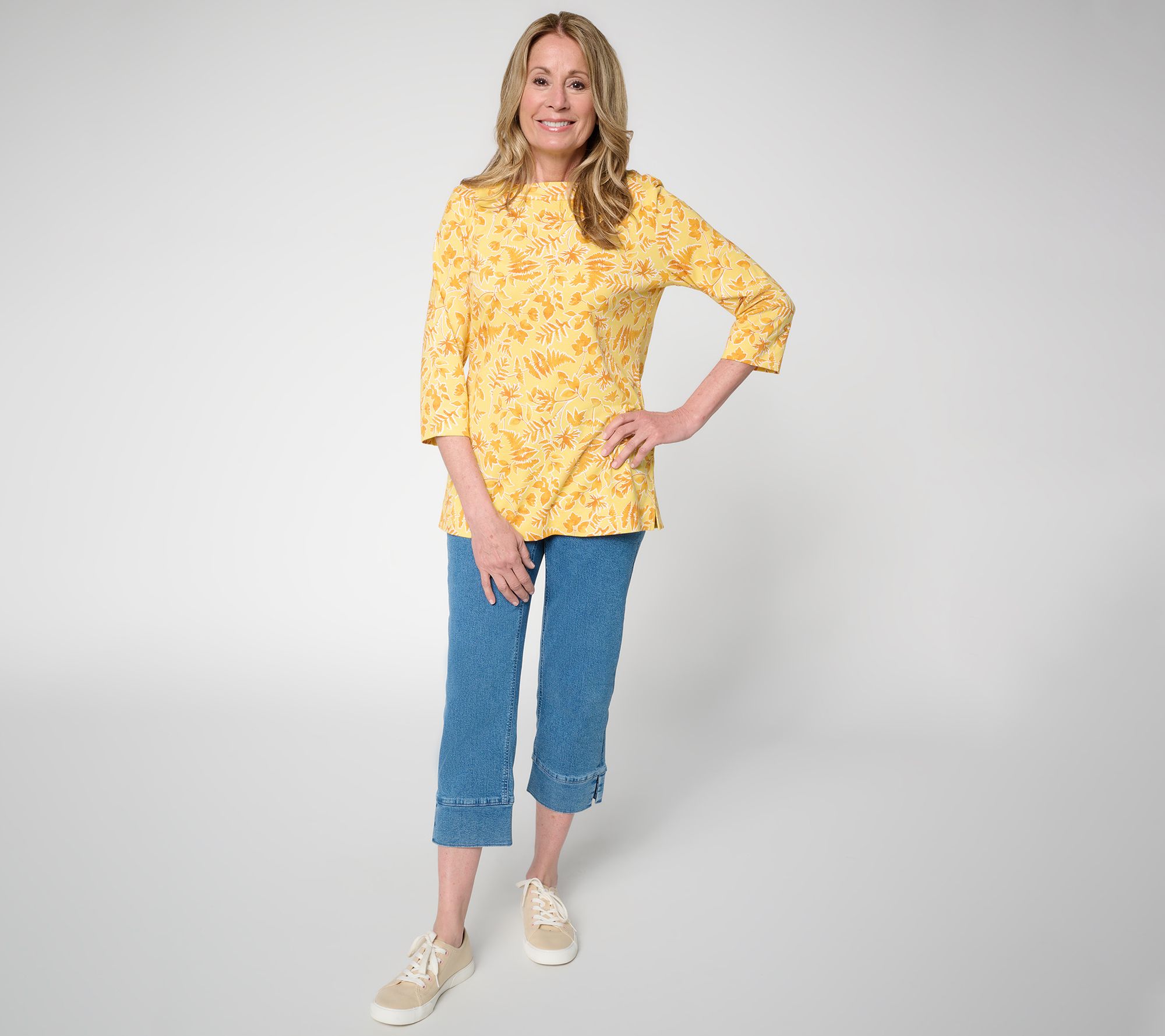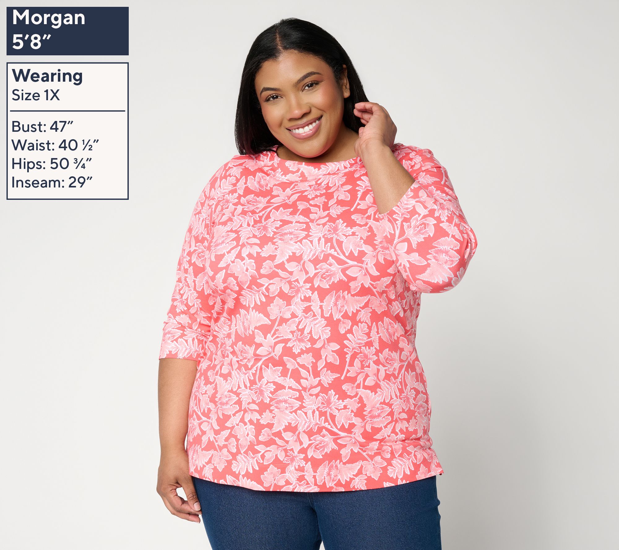 If a joyful botanical print is your jam, this is your top! From the boatneck (that provides extra-comfy coverage) to the So Soft Jersey fabrication, it's a cheery go-to for everything from baking with the littles to weekends in the country. From Denim & Co.® Fashions.