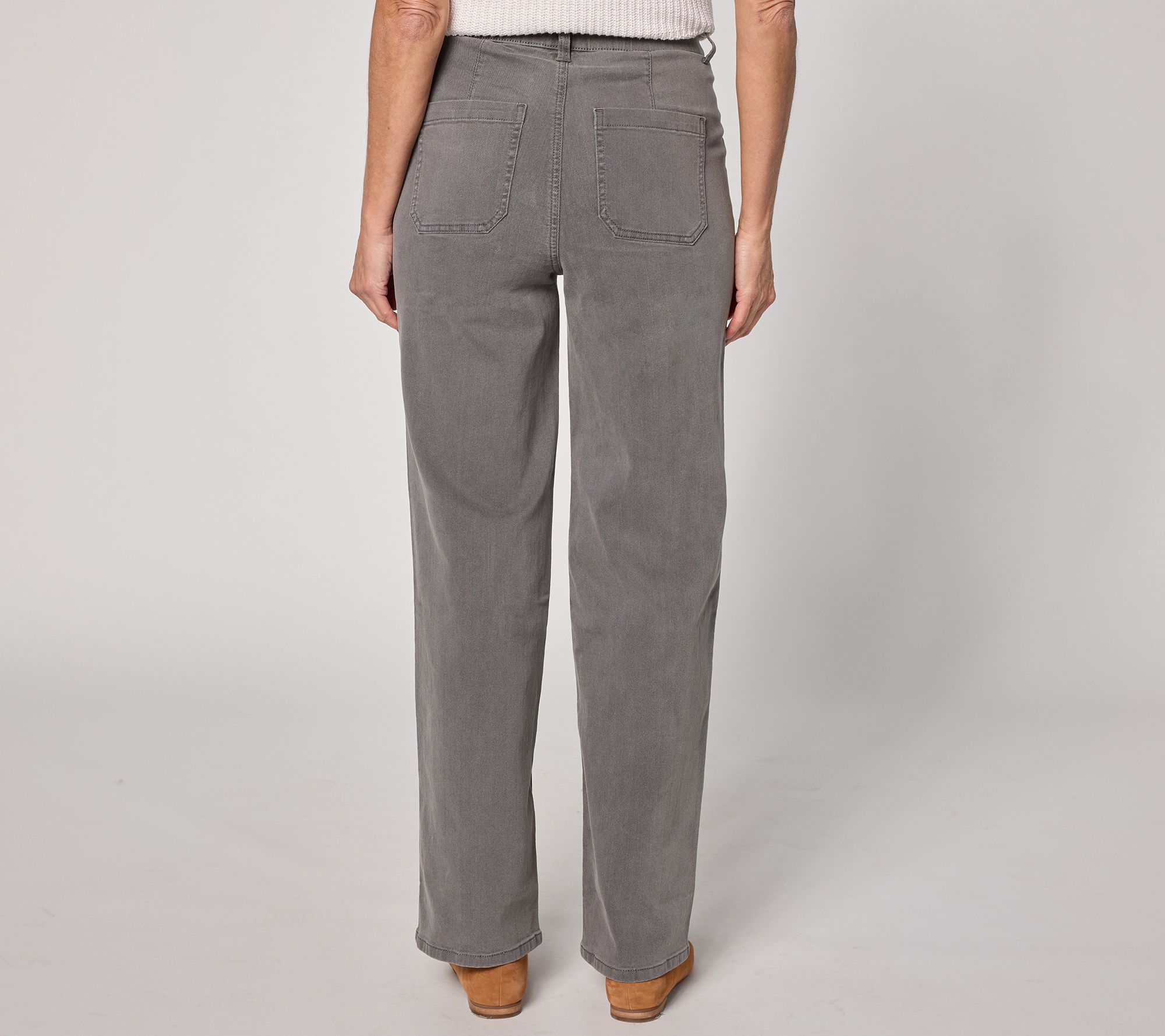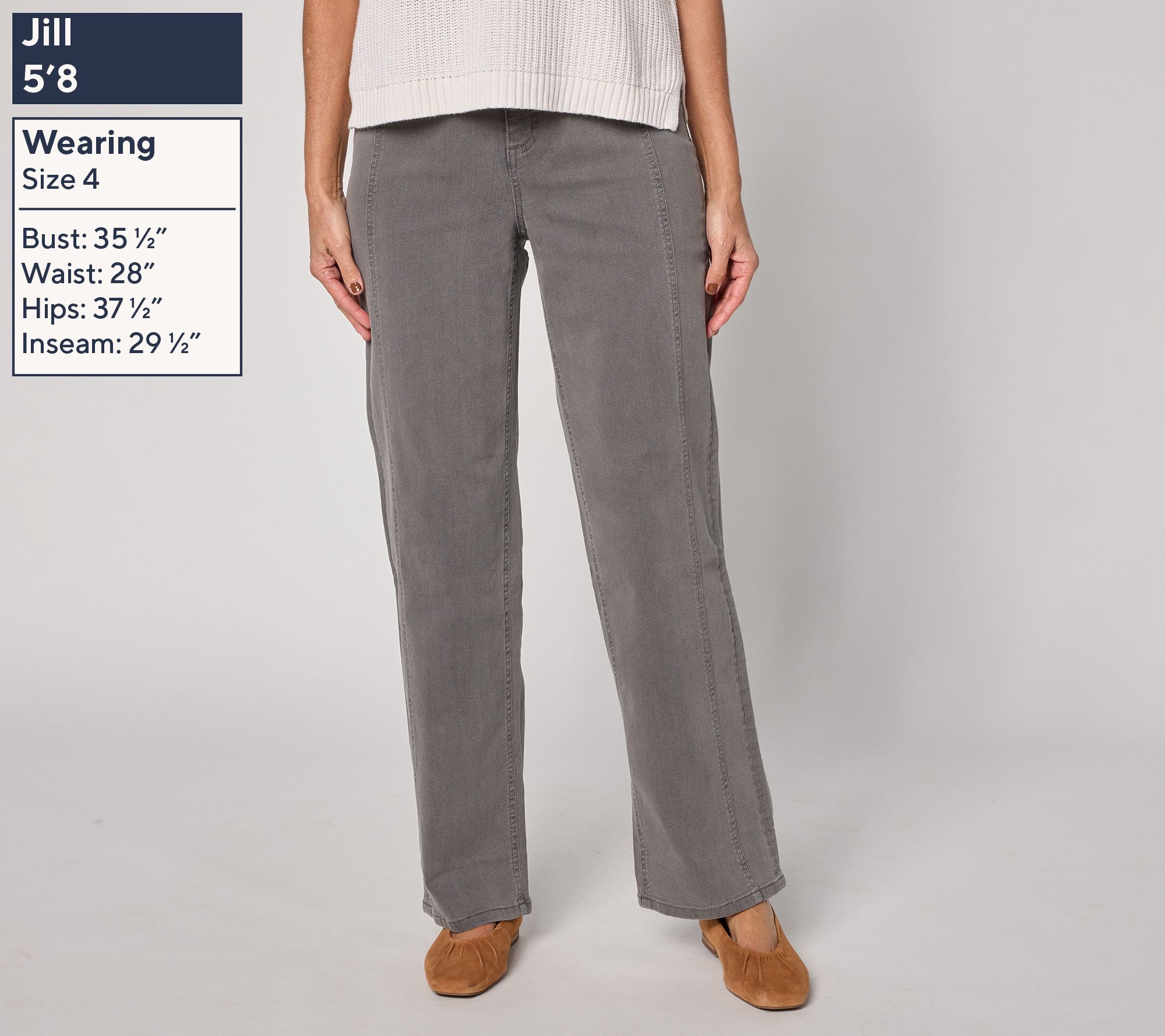 Ease into polished days and laid-back evenings with these denim wide-leg pants, designed with forward seaming and back darts for a flattering, modern look. The flat elastic at the back waistband adds gentle comfort, while classic five-pocket styling and a functional button fly keep things timeless. From Denim & Co.® Fashions.
