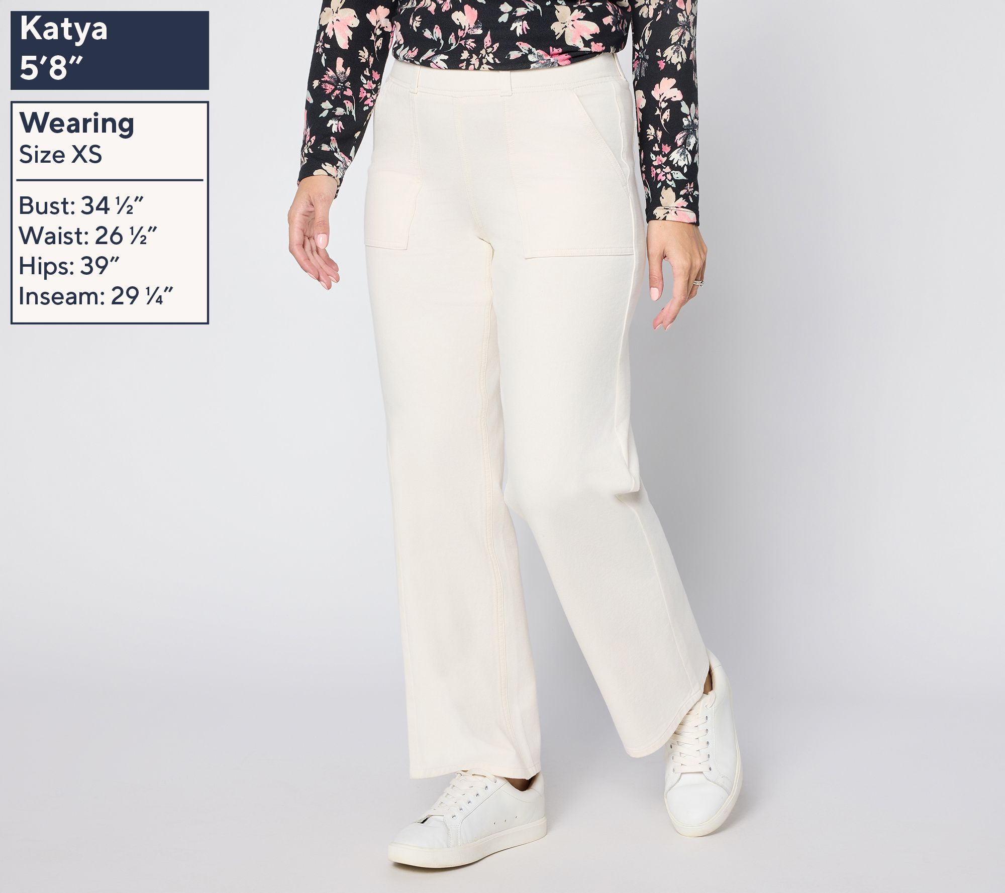 Show a little (wide) leg! For everything from weekend outings to busy weekdays, these How Smooth knit jeans serve up a trendy yet balanced silhouette with a comfy, flattering fit. Soft stretch fabric and an easy elastic waistband let you move freely, while handy front and back pockets offer everyday convenience. Pair with your favorite tops and flats for a go-anywhere look. From Denim & Co.® Fashions.