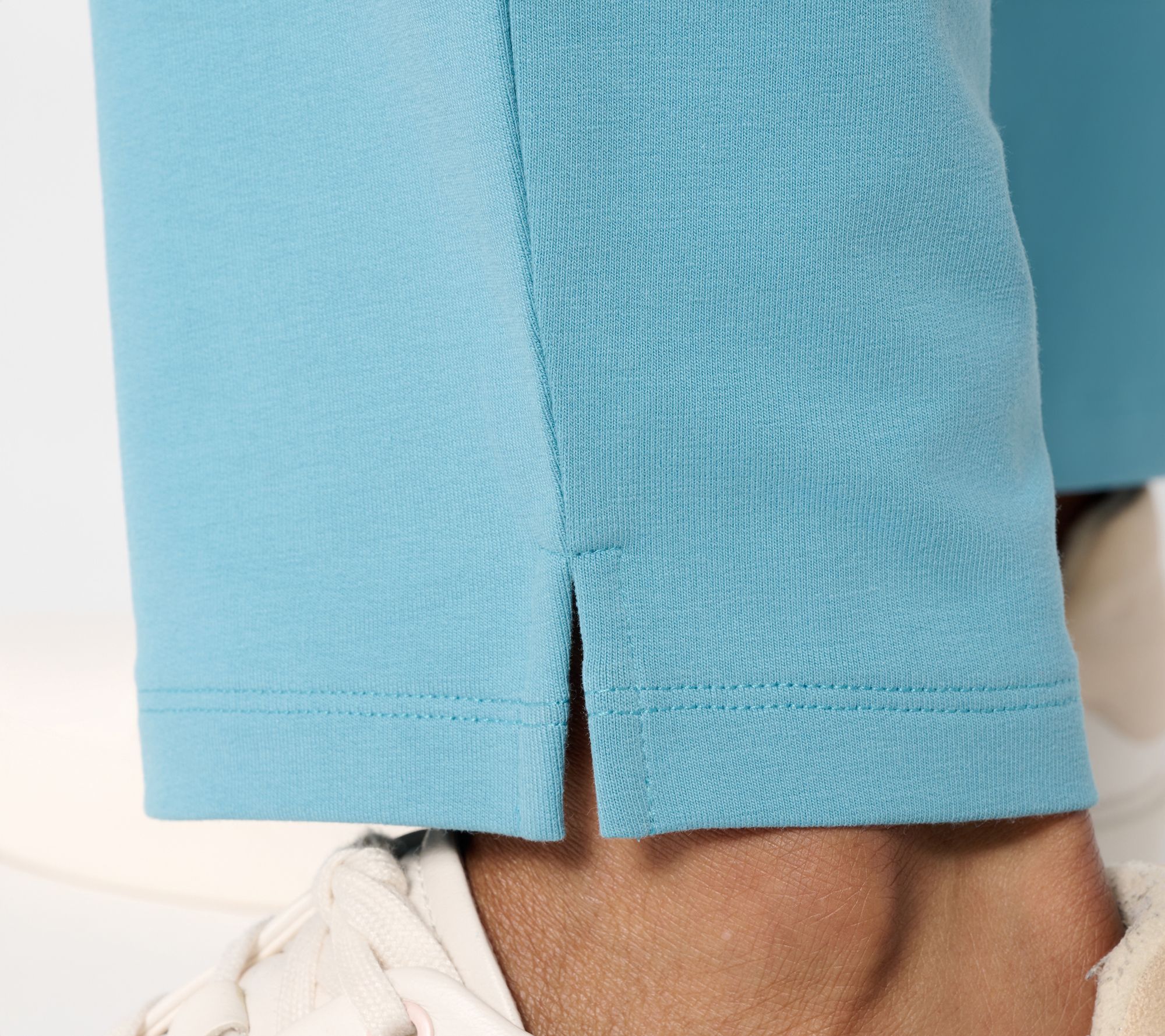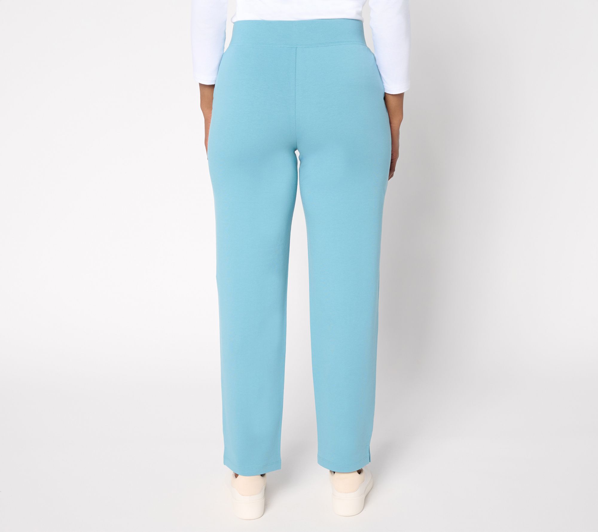 • Features: pull-on style, elastic waistband, front pockets with stitched-down pocket bags, side slits at hem, ankle length
