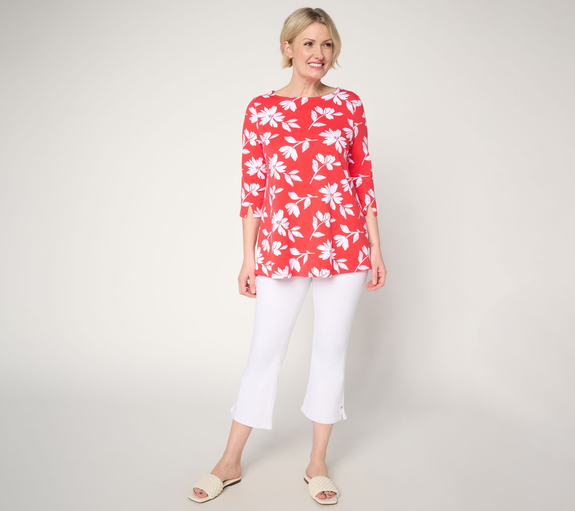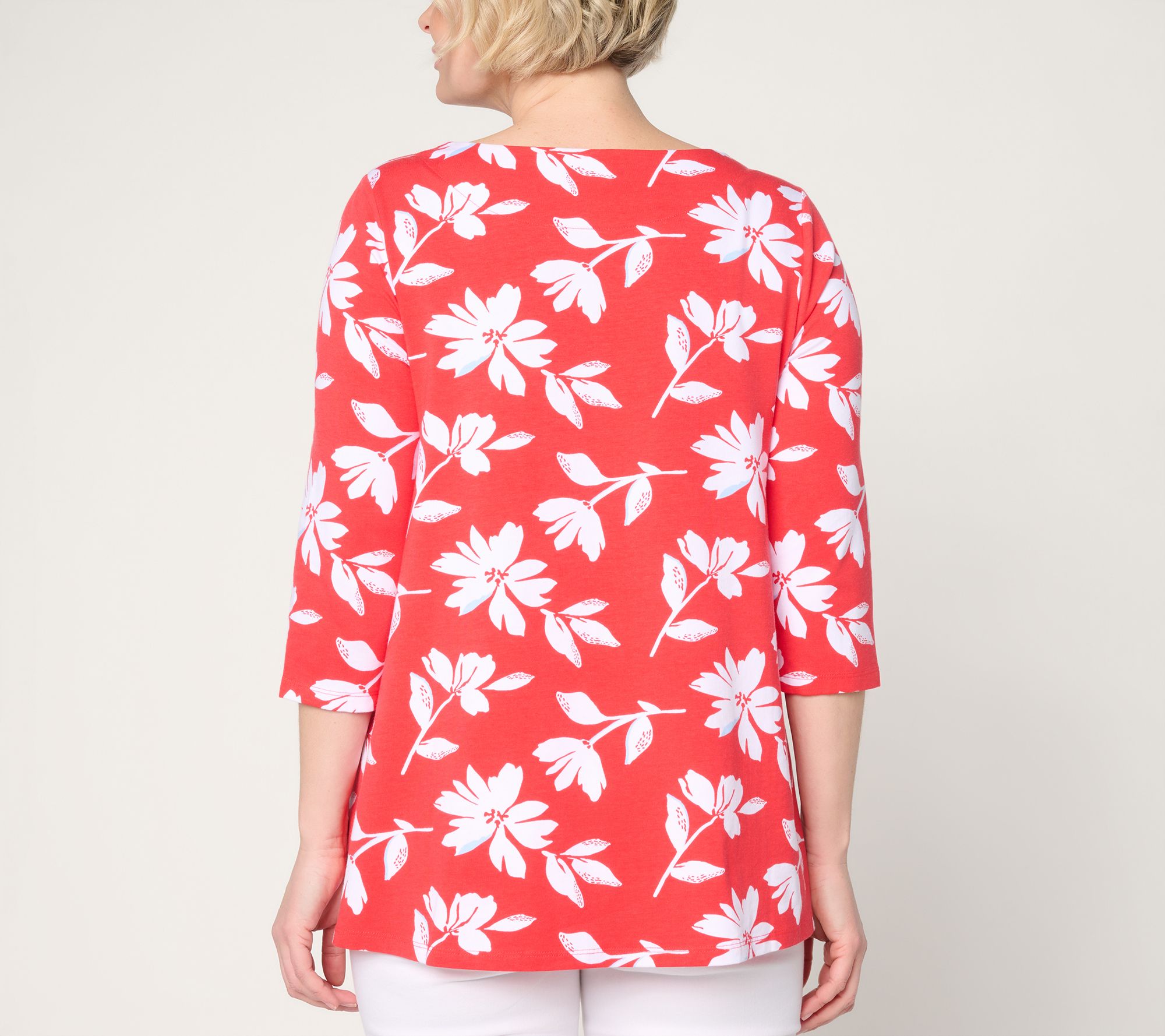 Caution: May cause continuous twirling! Turn heads while turning up the fun with this Denim & Co. swing tunic. The playful shape provides flirty, flowy movement, while the vibrant print brings instant personality. Style it with jeans, leggings, or trousers -- this tunic is your ticket to feel-good fashion that's ready for anything. From Denim & Co.® Fashions.