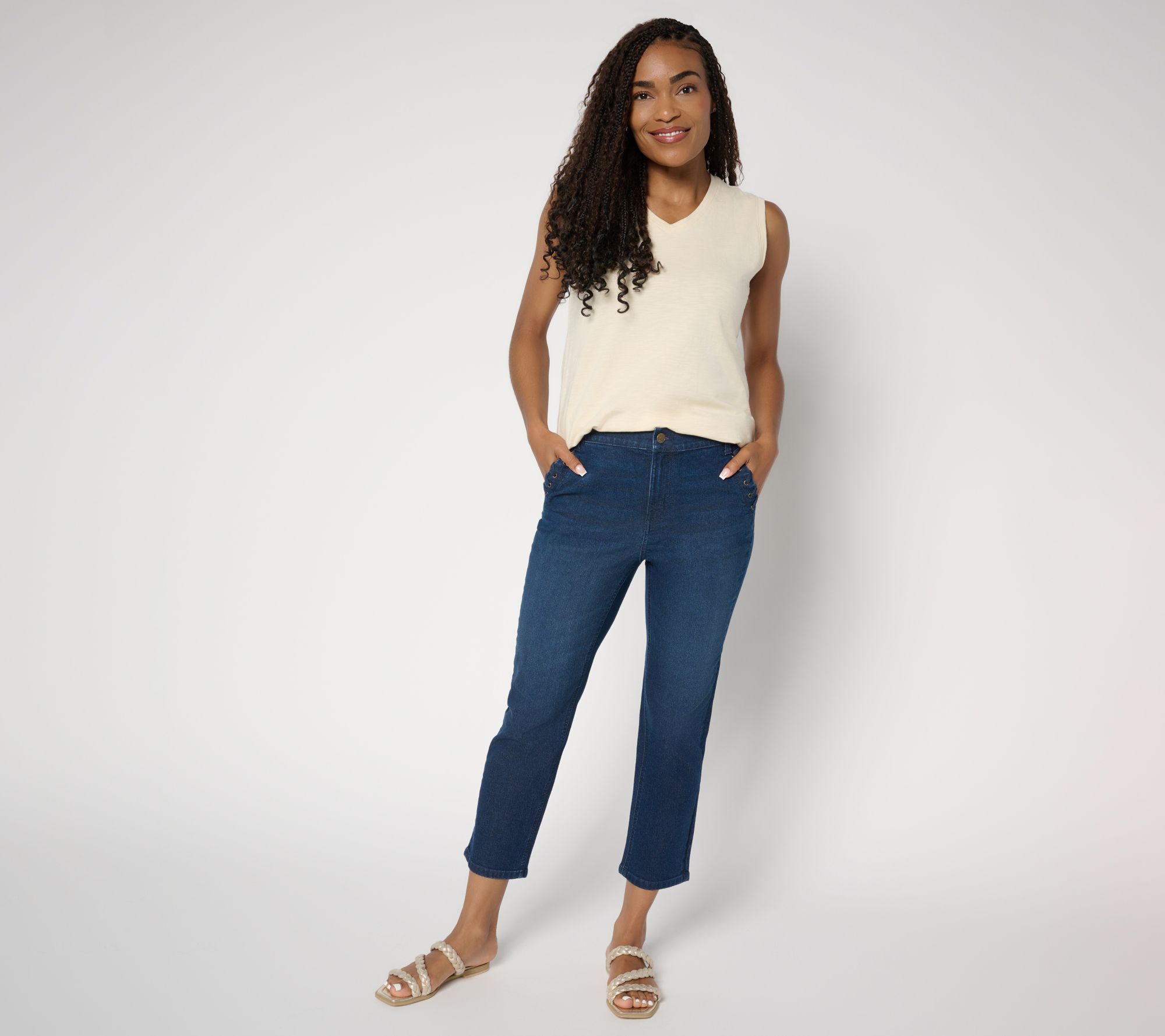 Denim & Co. Regular Indigo Classic Stretch Crop Jean w/ Pocket Detail