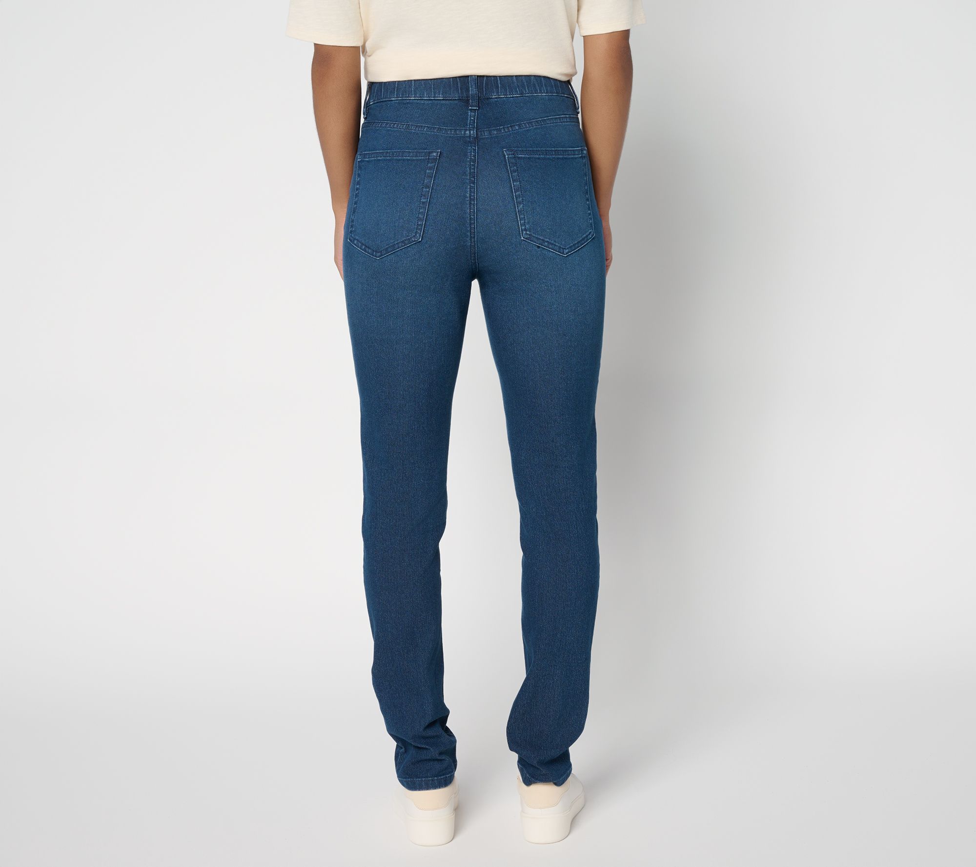 Shhh. No one has to know that these slim-straight jeans are a pull-on style. The functional front and back pockets, the belt loops, and the fly detail won't give it away -- nor will the woven Classic Stretch fabrication. (It'll be our little secret.) Slip them on for everyday appointments or an evening out -- with a simple tee or patterned blouse -- and share only their sleek look. From Denim & Co.® Fashions.