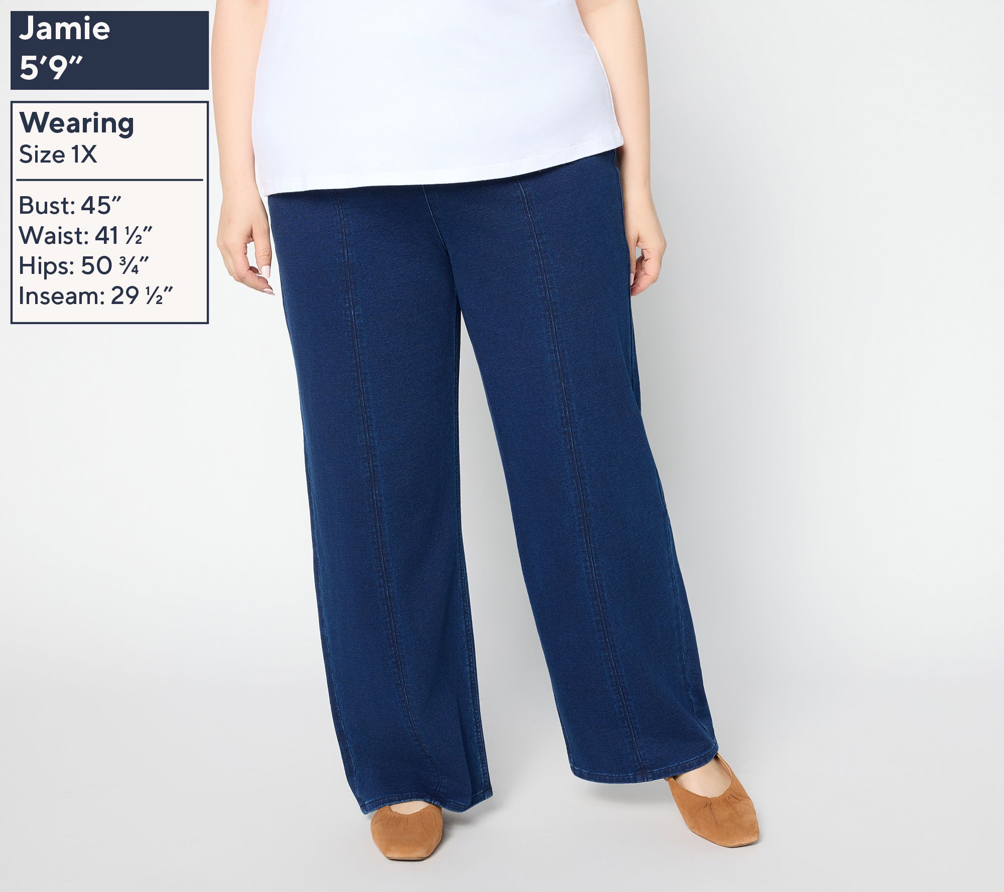 Easygoing comfort meets classic appeal in these knit denim straight-leg jeans. Designed with a trouser-like aesthetic, the pull-on design and flat elastic waistband create a smooth silhouette, while a center seam adds a leg-lengthening look you'll love to live in. From Denim & Co.® Fashions.