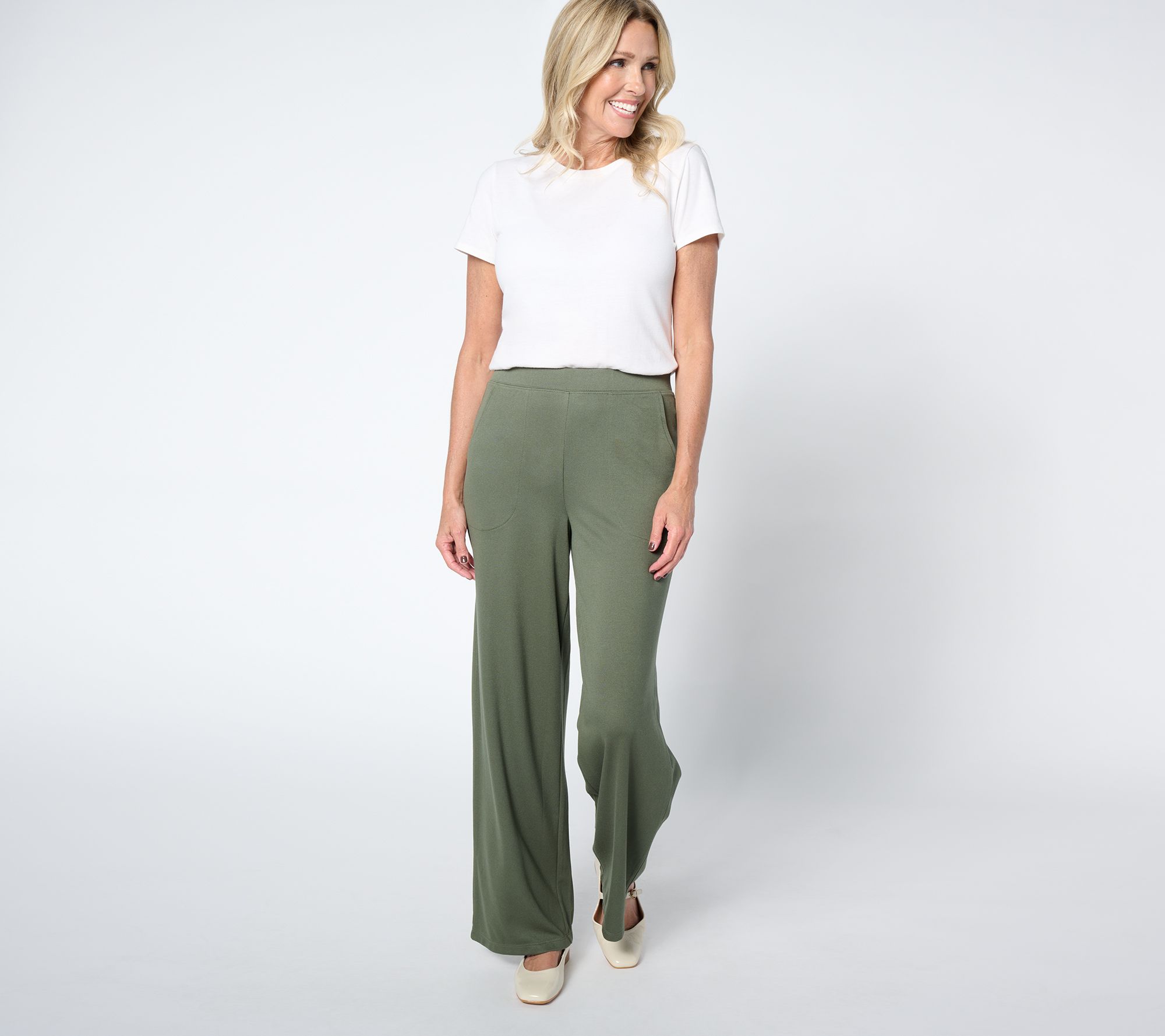 Somewhere sandwiched between sweats and structured trousers is where you'll find these knit twill wide-leg pants from Denim & Co®. Splashed with spandex, the comfy fabric and pull-on style make them a great pick for active days, but the rayon blend allows for a drapey, never clingy, fit, so their polished presence is just as welcome for workdays, too. From Denim & Co.® Fashions.