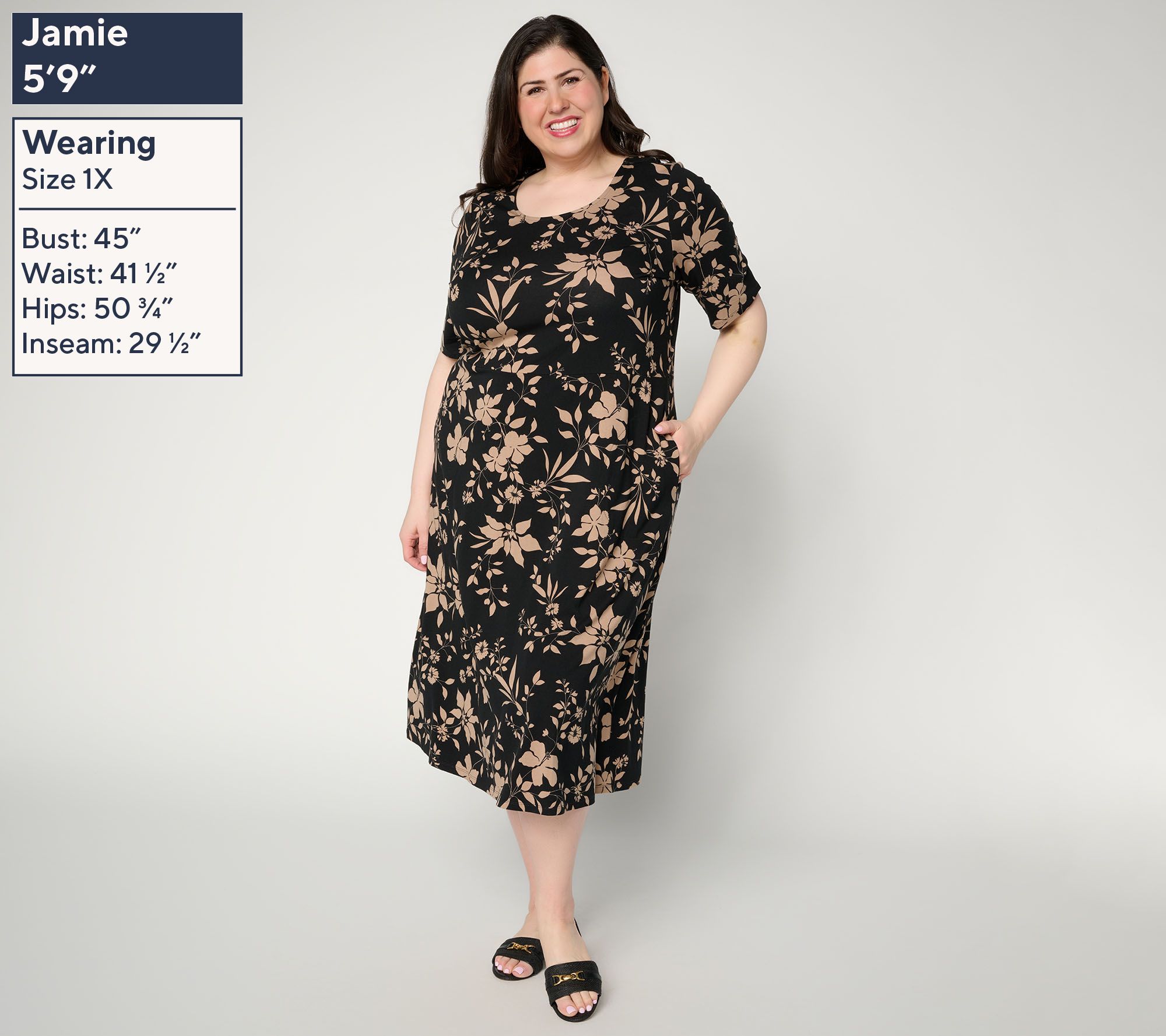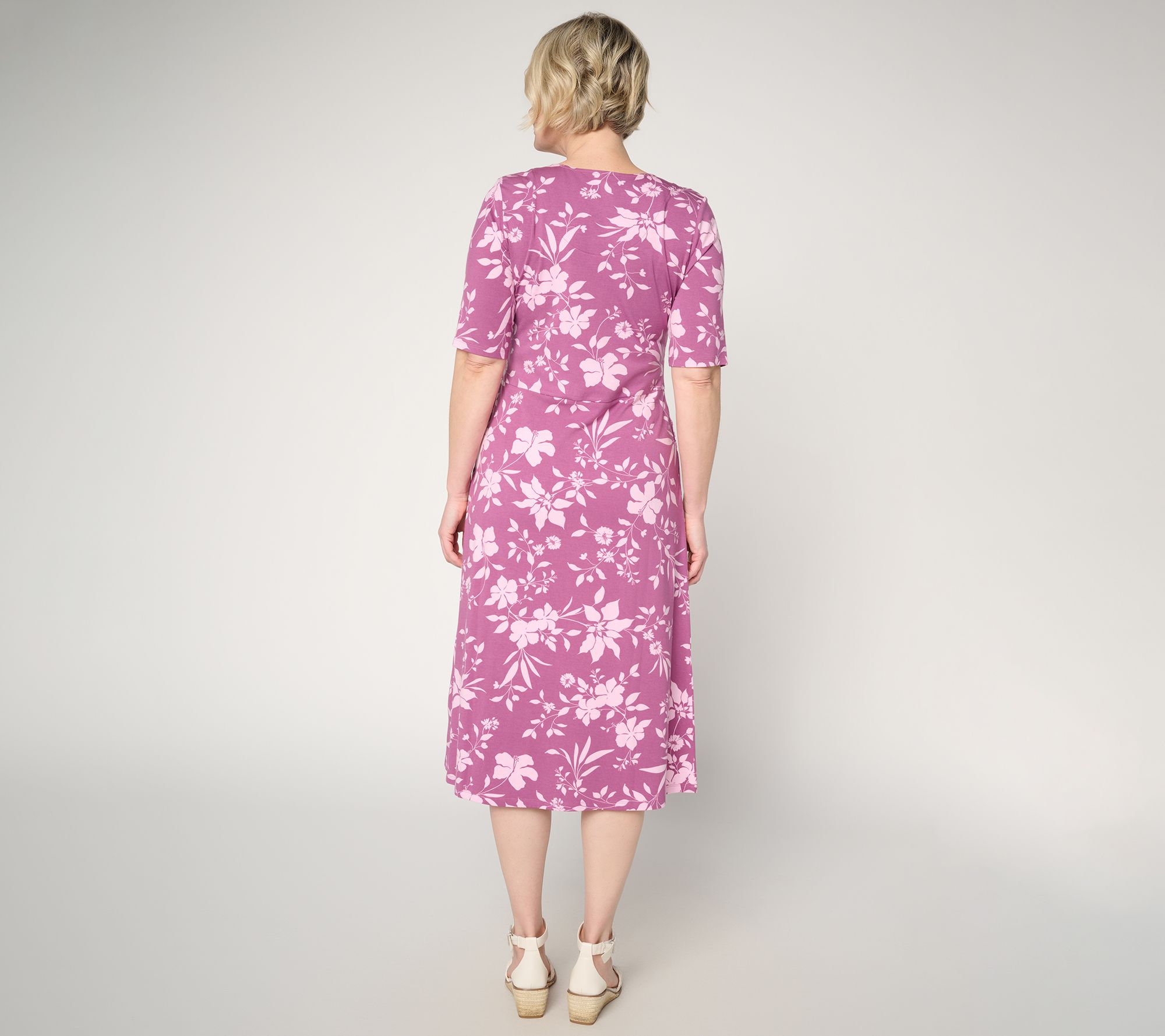 Planning a lunch out with friends or catching up on errands feels easy in this midi dress crafted from a soft knit fabric. Elbow-length sleeves and a round neckline keep the look classic yet polished for work or the weekend. Pair it with anything from flats to sandals to wedges to dress it up or down. From Denim & Co.® Fashions.