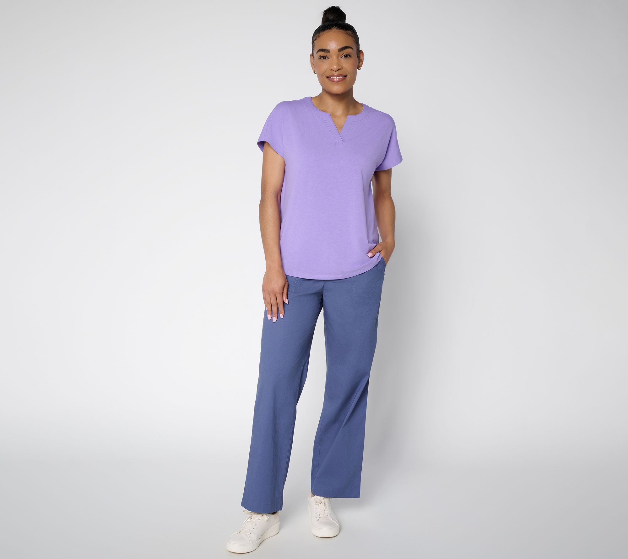 Crisp, smooth, and lightweight -- these poplin straight-leg pants are poppin' for office visits and weekend outings with their polished appearance and pull-on ease. With a hint of stretch and practical front patch pockets, they offer easy-moving comfort all day long. From Denim & Co.® Fashions.