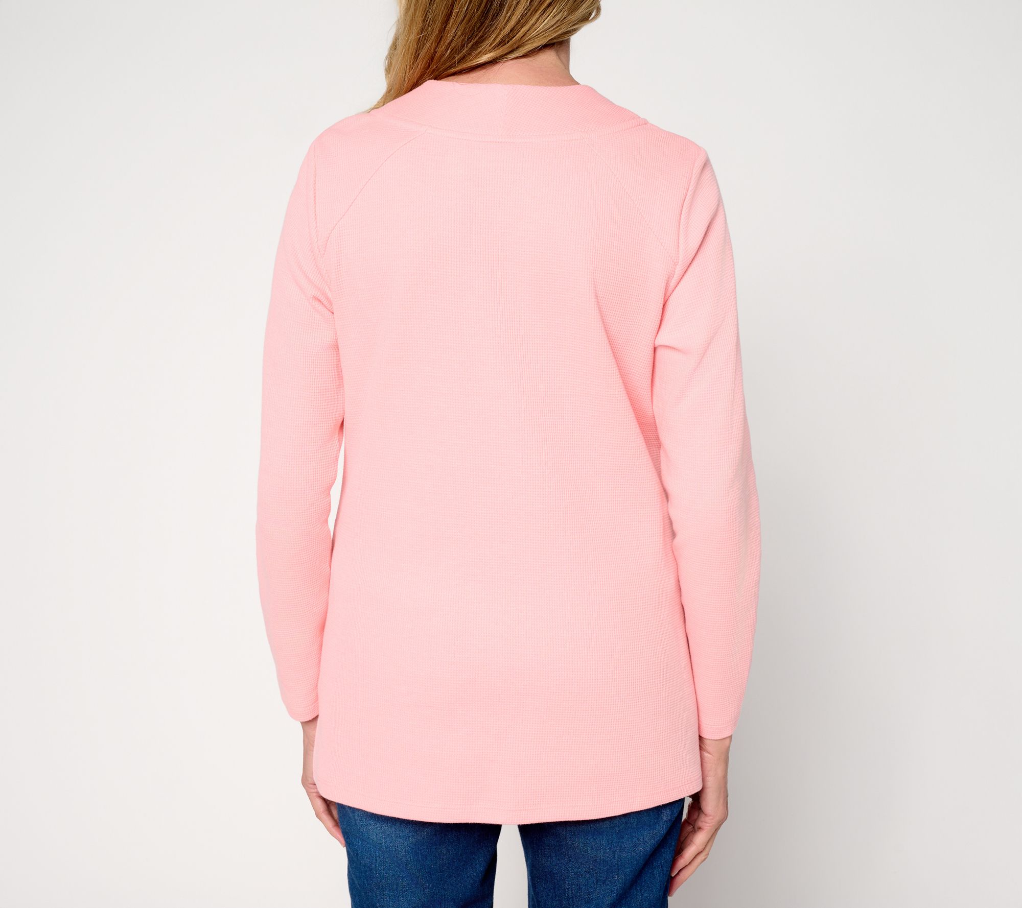 Denim & Co. Regular Waffle Knit Crossover V-Neck Tunic