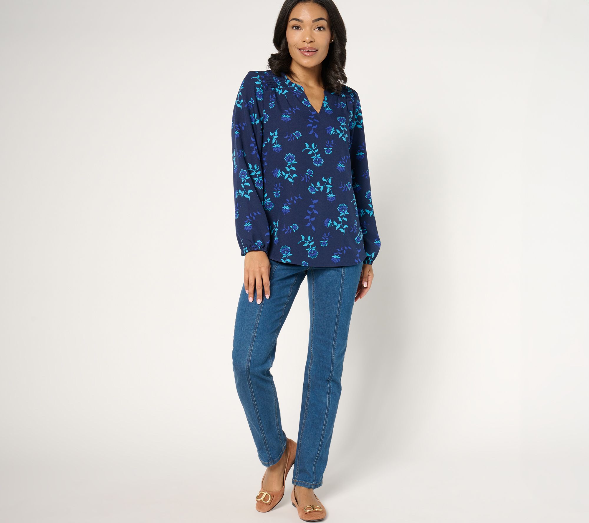 Vibrant prints -- like the one on this balloon-sleeve blouse -- are such a vibe! Pop it on to power up a gray day, let it refresh your go-to denim, or designate it for desk-to-date days. Work! From Denim & Co.® Fashions.