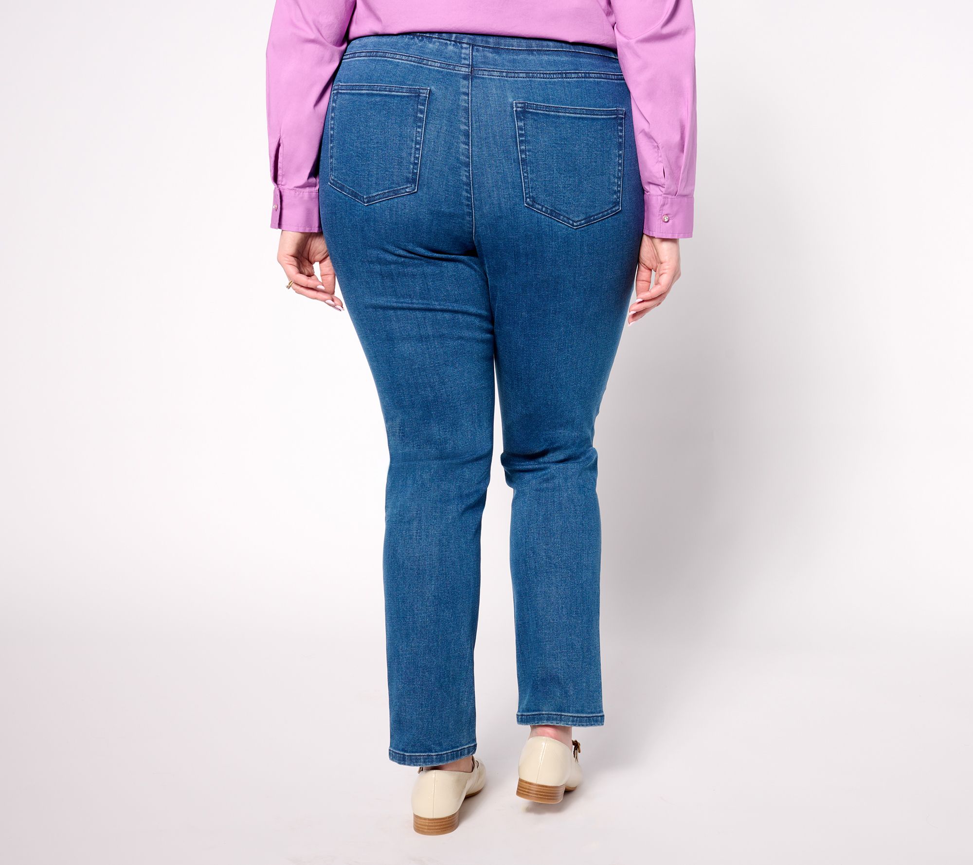 Make every casual moment (and movement!) a breeze in these Perfect Flex Signature jeans that partner beautifully with laid-back looks like tees and sneaks to more polished pieces like blouses and boots. These everyday essentials boast both comfort and style with a pull-on Hollywood waistband, slim-straight leg design, and flexible fabric. From Denim & Co.® Fashions.
