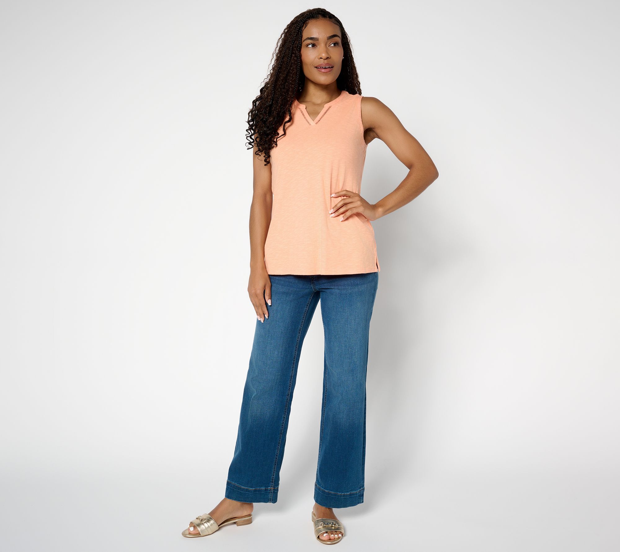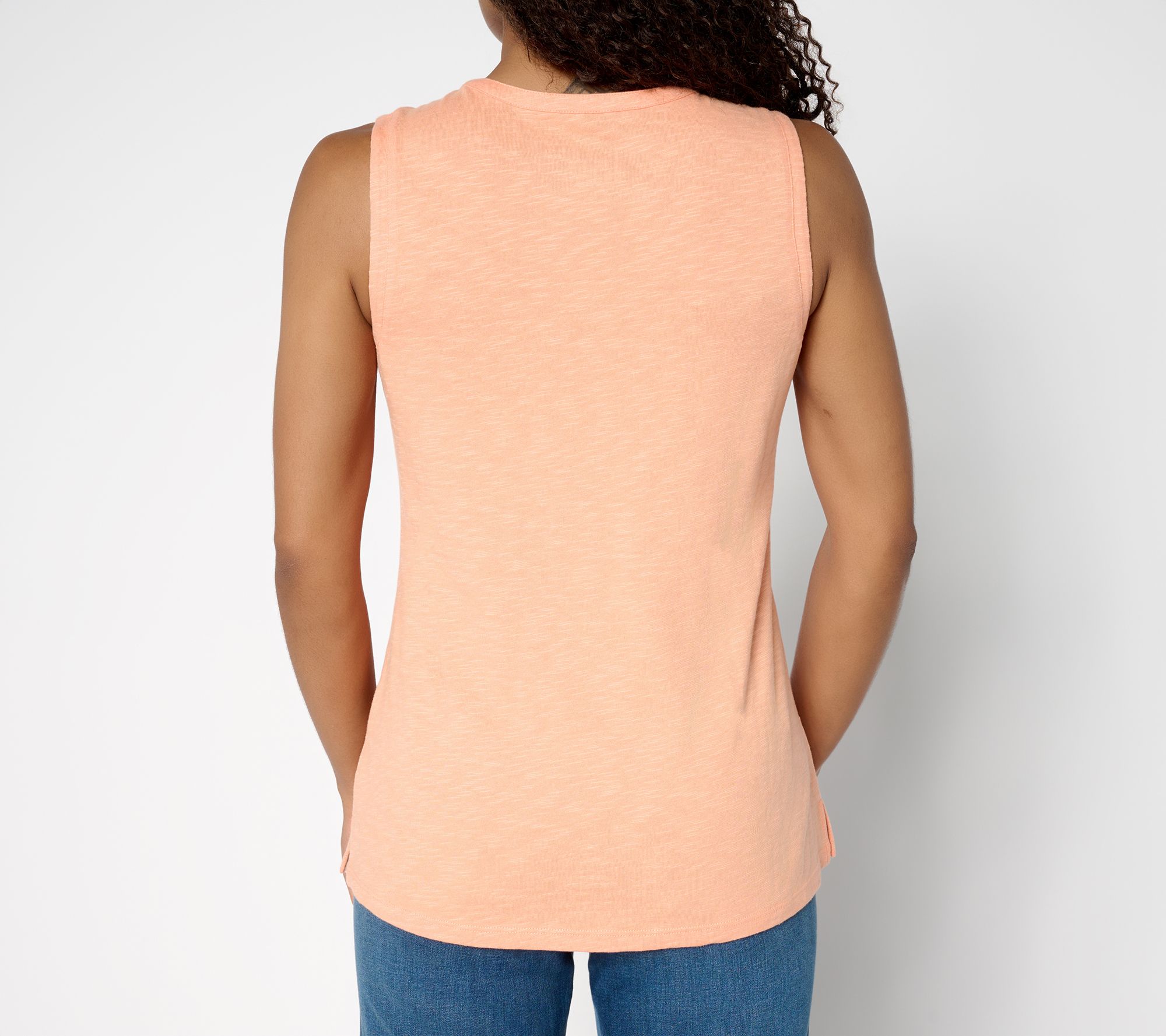 When warm weather calls, reach for this easy tank with a charming lattice trim that adds a little something extra. Slub jersey creates a relaxed vibe whether you're dressed up for lunch or keeping it casual with shorts. Toss on a light cardigan for evenings, and you're good to go. From Denim & Co.® Fashions.