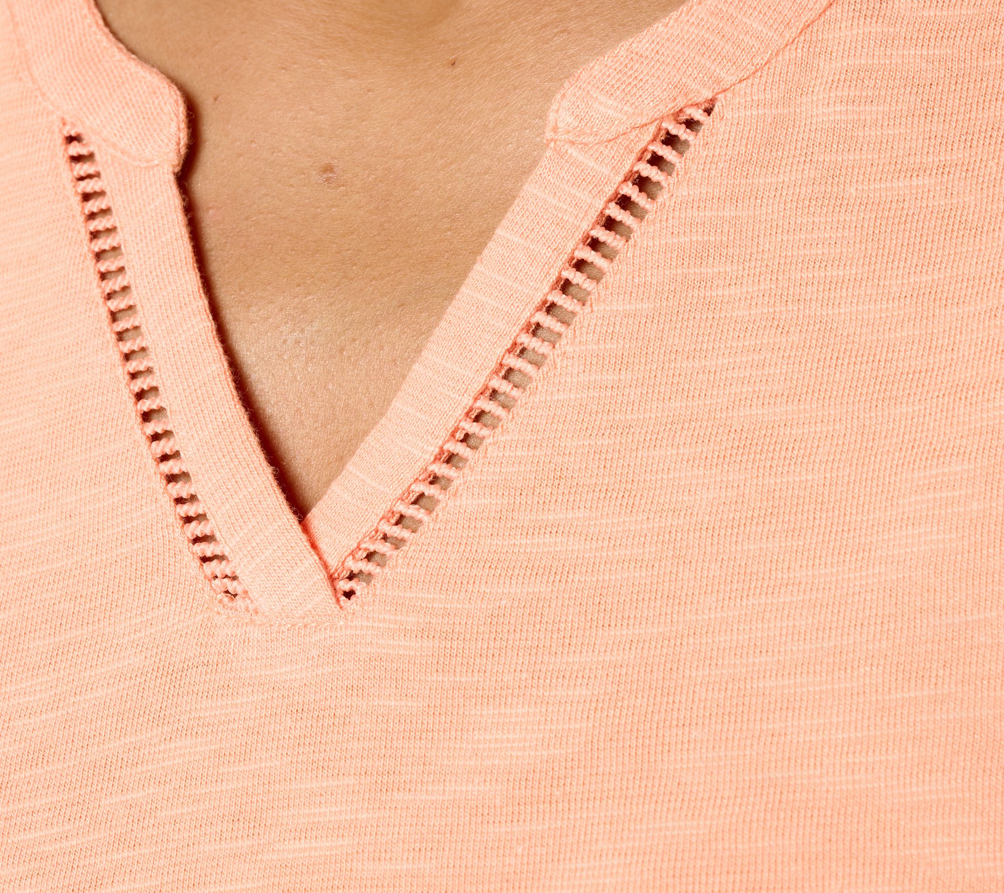 Denim & Co. Slub Jersey Lattice Trim Split Neck Tank