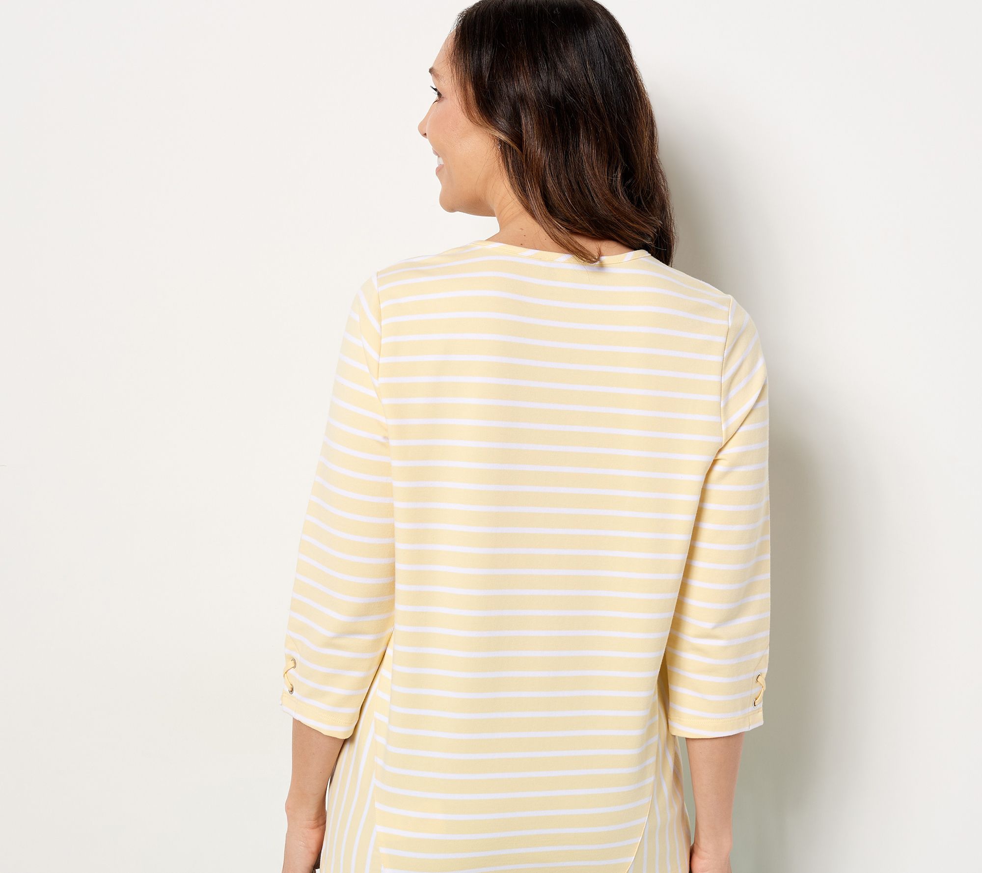 Denim & Co. Striped French Terry Top with Grommet Detail