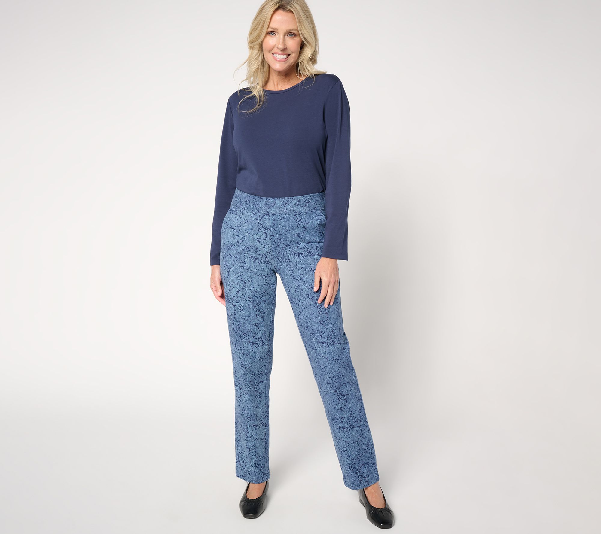 Your most active days demand the no-fuss comfort of these printed Duo Stretch straight-leg pants -- as does cozying up on the couch afterwards! Redefine your work or weekend time, and run-around time with a crisp, polished pull-on look that offers both comfort and utility. From Denim & Co.® Fashions.