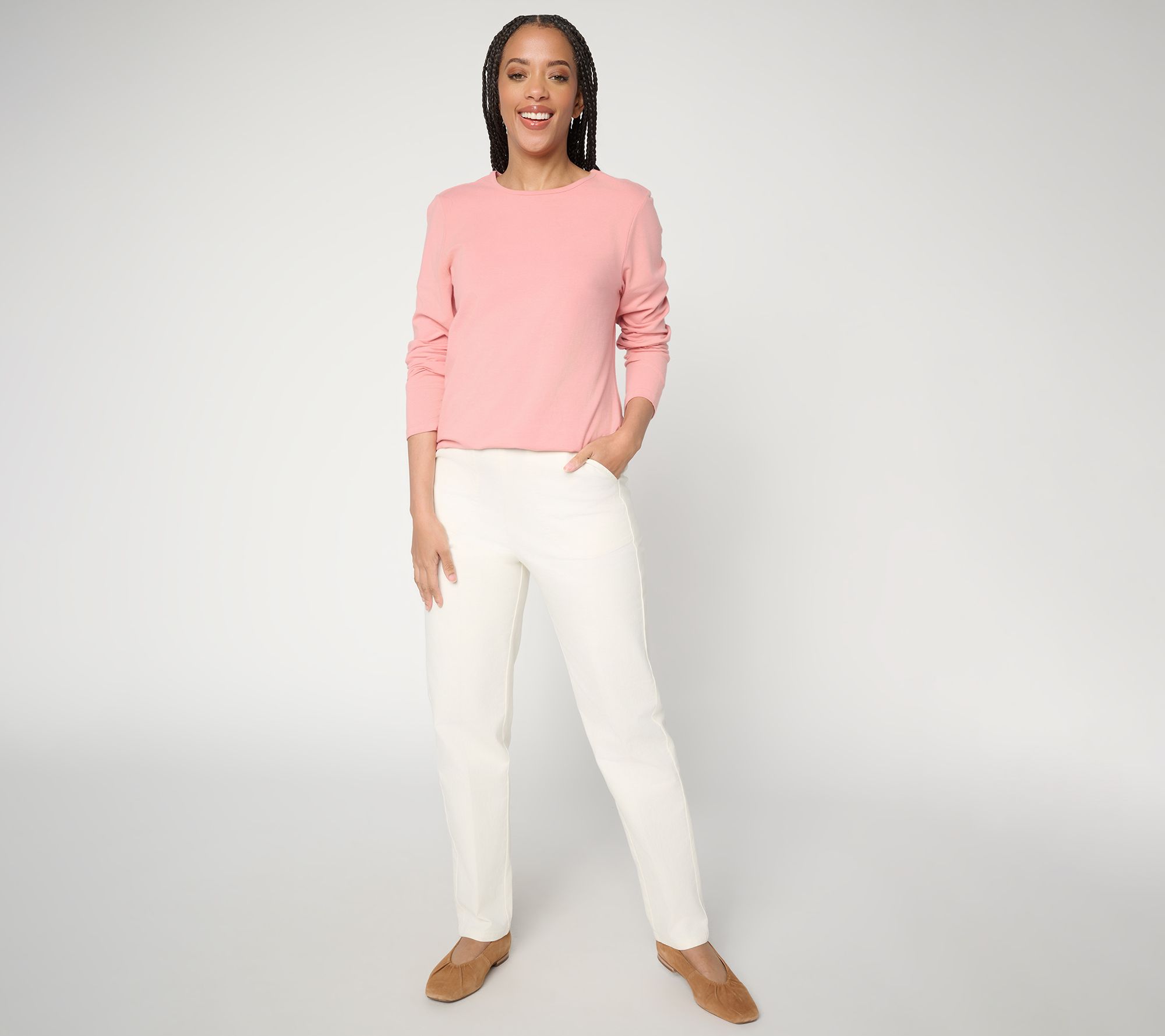 Denim & Co. Tall Color Flat Front Side Pocket Pants w/ Front Crease