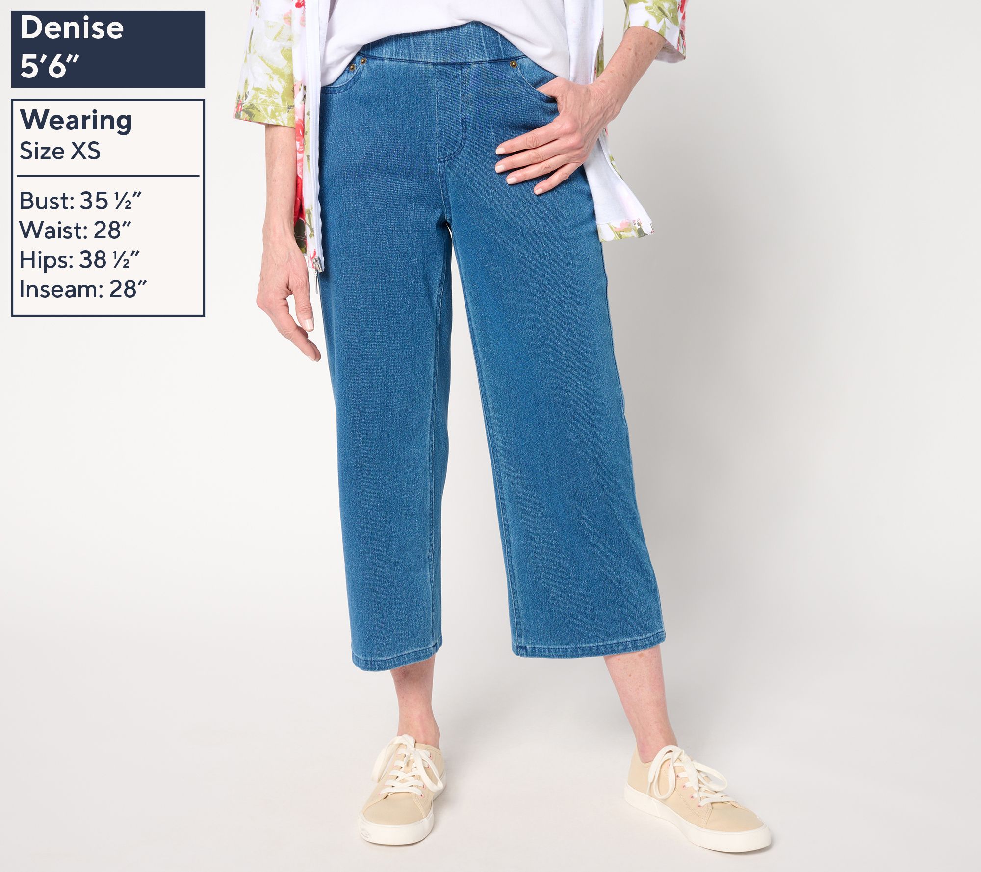 You and your active days deserve the chic comfort of these Denim & Co.® crop jeans. Perfect for running errands or running to the office (or both!), Comfy Knit Air construction covers you in comfort while the trouser-like tailoring is always poised and polished (and the crop length frames your shoe game perfectly). From Denim & Co.® Fashions.