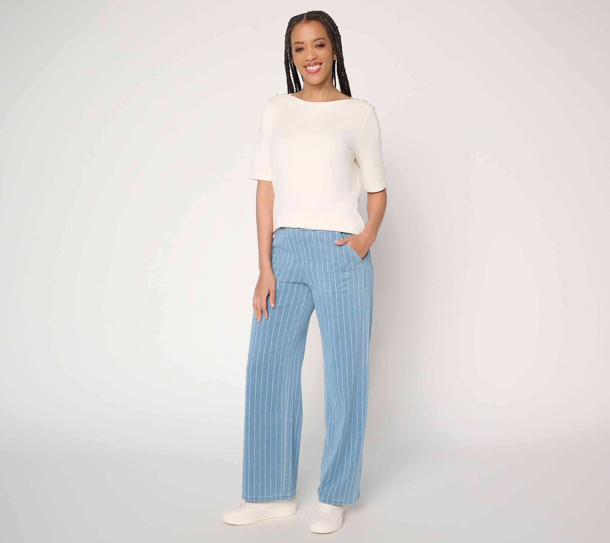 But don't let their laid-back vibe fool you. These pants bring it with their playful vertical striping and utility-inspired pockets, perf for stashing your phone, keys, or that emergency protein bar. No matter what you pair them with, you'll look put-together without even trying. From Denim & Co.® Fashions.