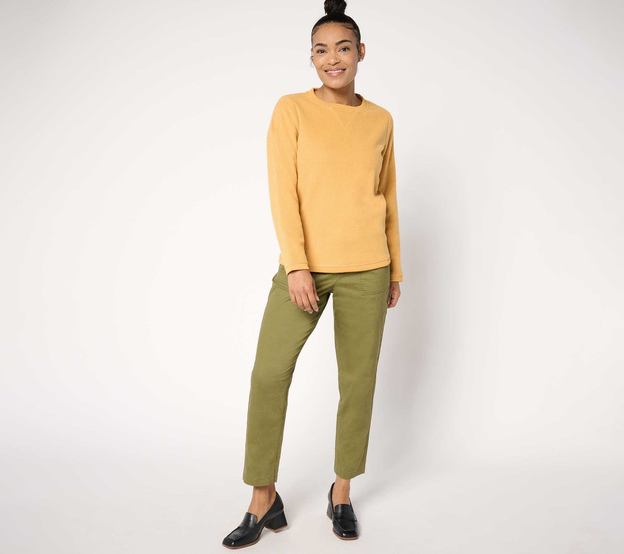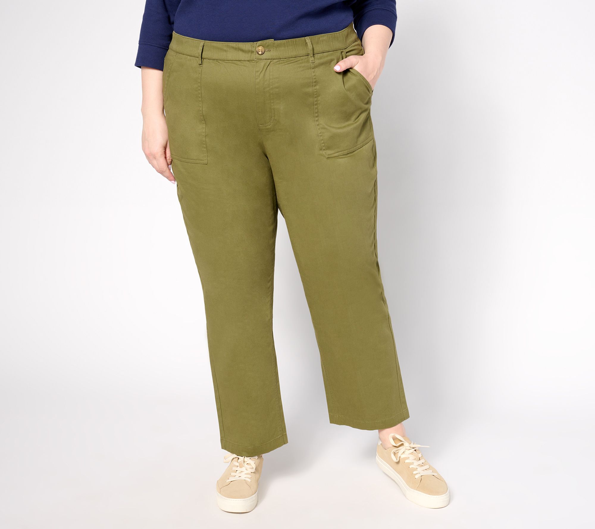 What's knocking on your closet door? These not-so-basic basics from Denim & Co.®. These EasyWear twill pants will easily slip right into your foundation rotation. Sandwiched somewhere between your everyday denim and traditional trousers, they bridge the gap between laidback style and dressier attire. Pair with boots and a blazer for in-office days, then swap out for a tee, cardi, and kicks for some downtime. From Denim & Co.® Fashions.
